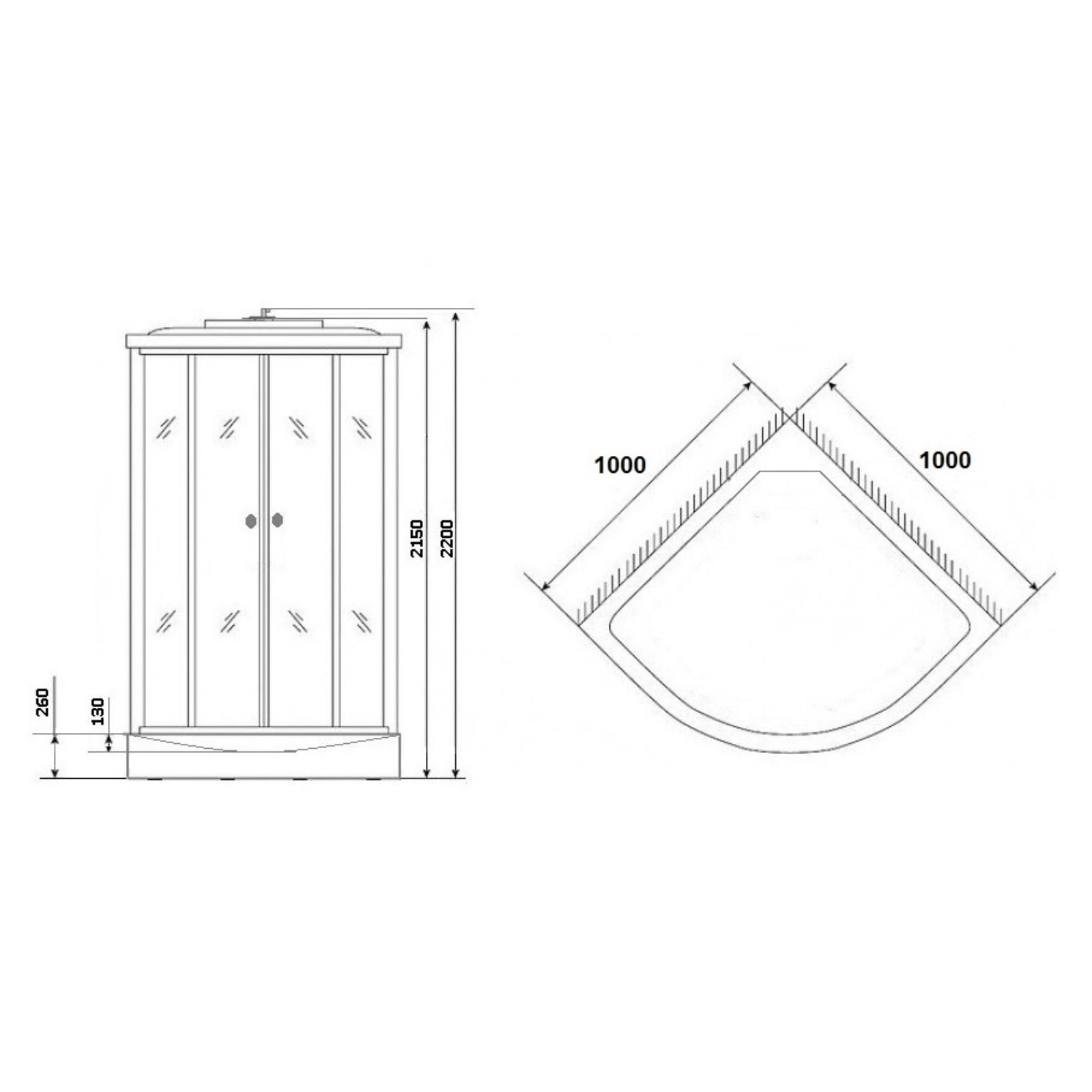 • Размер (Длина × Ширина × Высота) 100 см х 100 см х 215 см