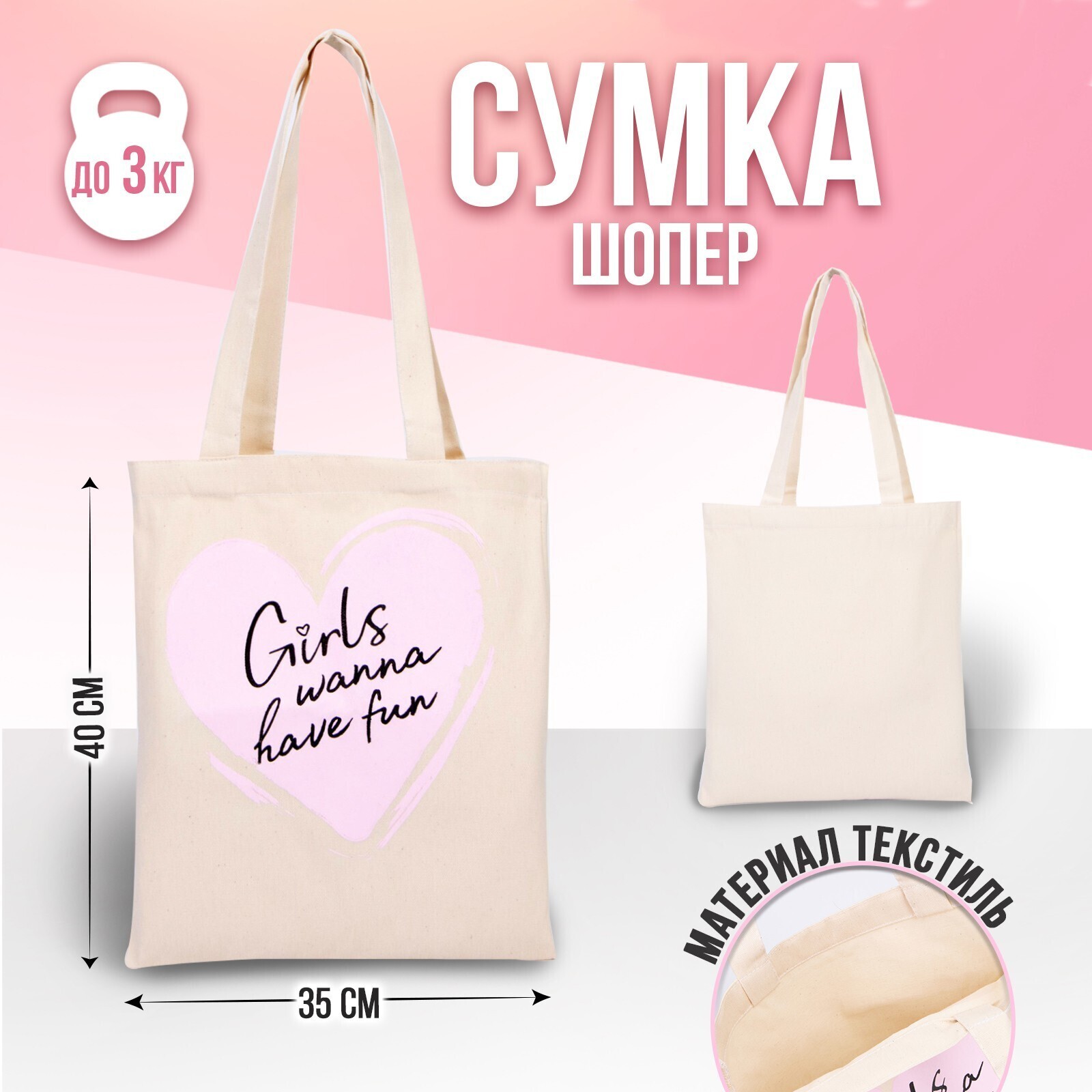 Сумка-шопер Girls, 28х0,5х33 см, отд без молнии, без подкладки, цвет бежевый