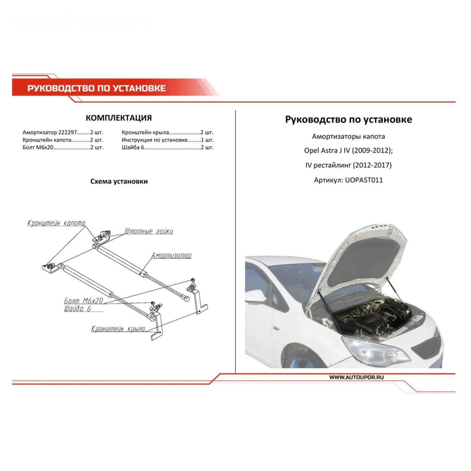Упоры капота АвтоУПОР для Opel Astra J хэтчбек 5-дв., универсал, седан, 2009-2012 2012-2017, 2 шт., UOPAST011