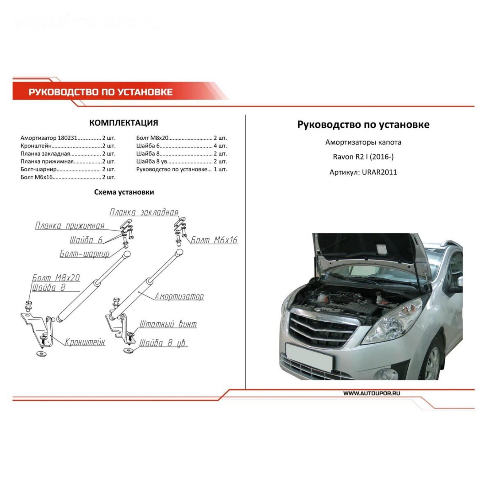 Амортизаторы капота "АвтоУПОР", Ravon R2 2016-н.в., 2 шт., URAR2011