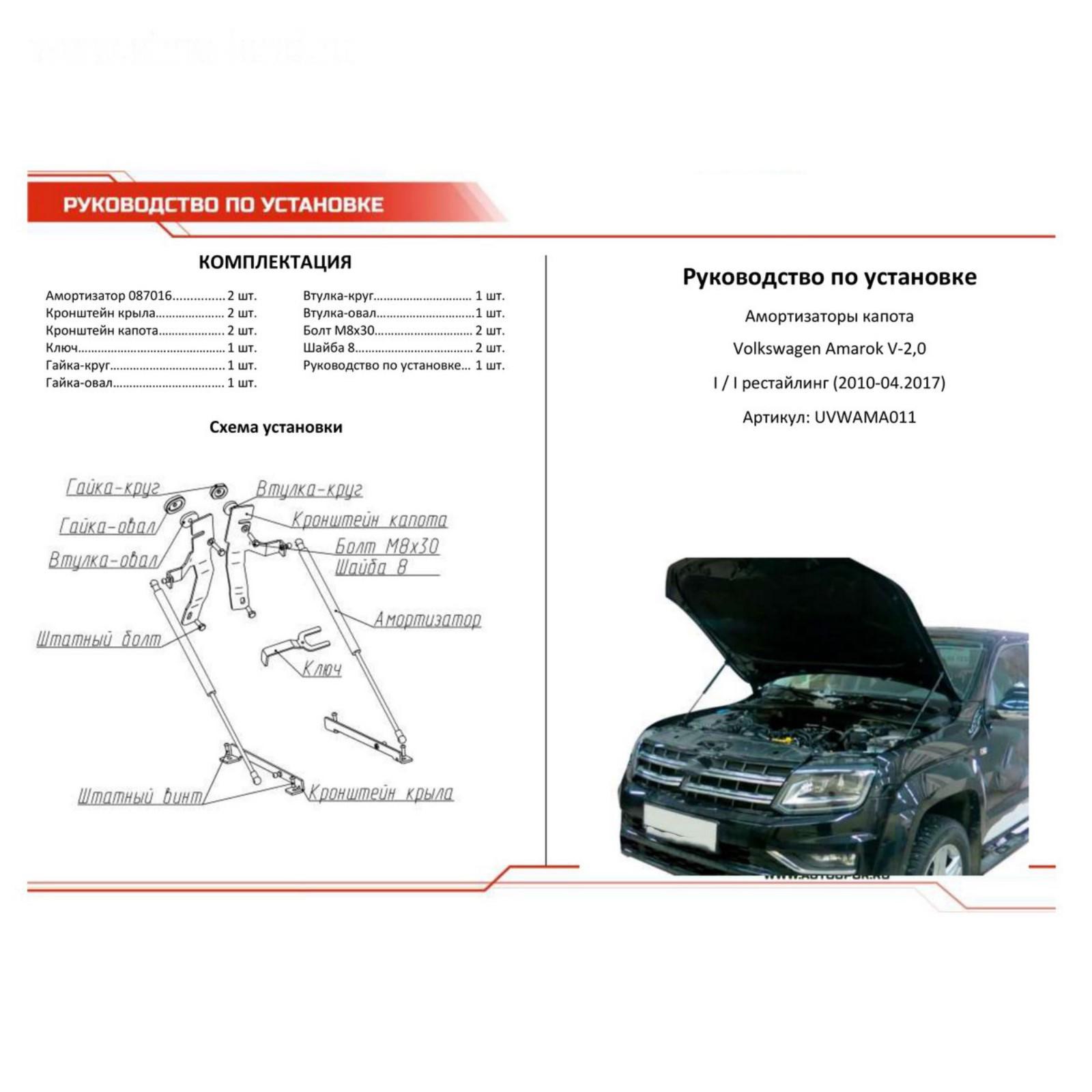 Амортизаторы капота "АвтоУПОР", Volkswagen Amarok 2010-2017, 2 шт., UVWAMA011