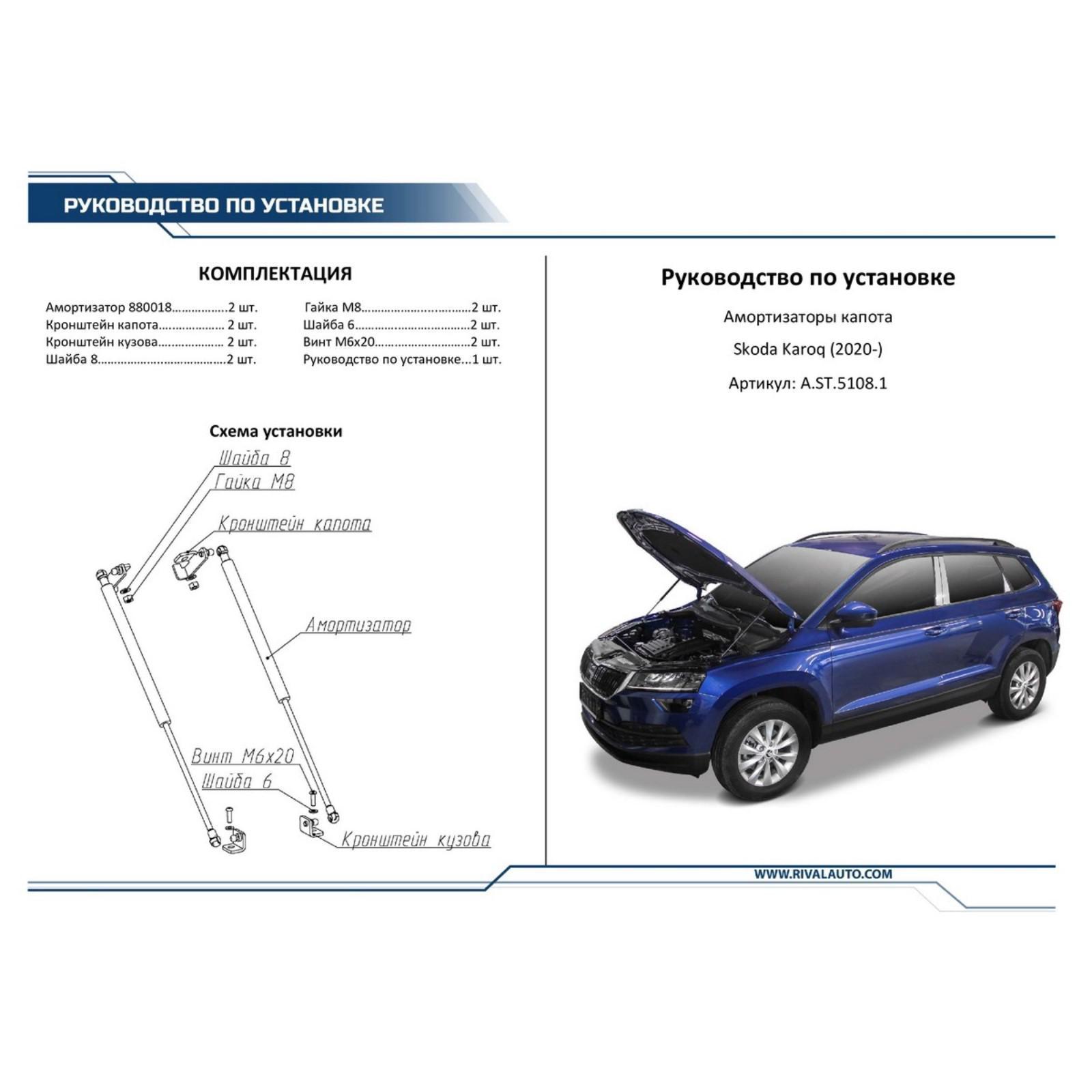 Амортизаторы капота RIVAL, Skoda Karoq 2020-н.в., 2 шт., A.ST.5108.1