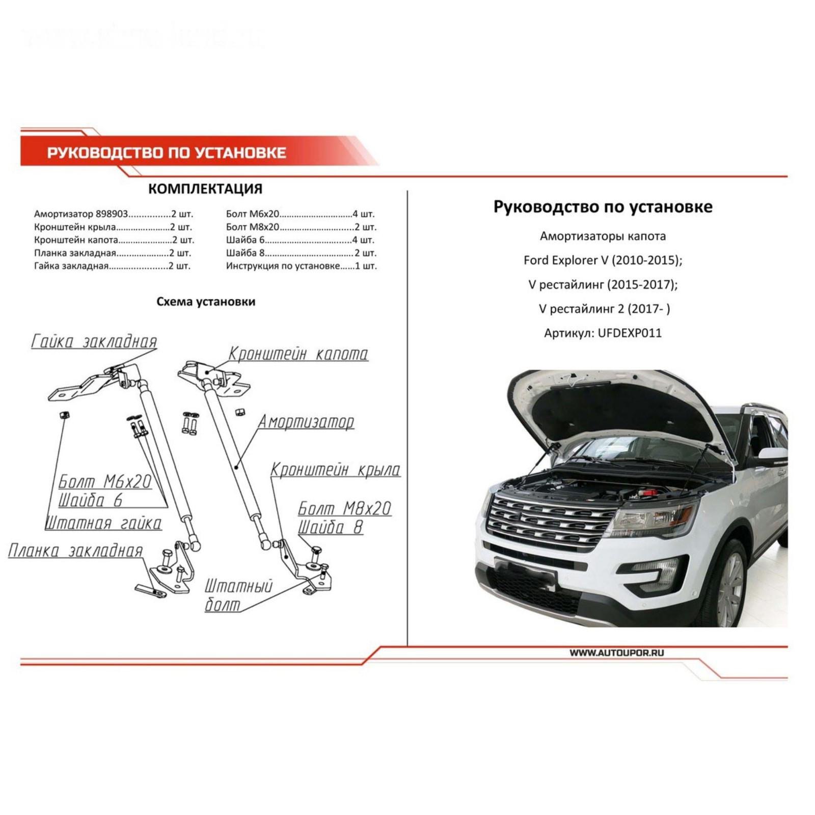 Амортизаторы капота "АвтоУПОР", Ford Explorer 2010-н.в., 2 шт., UFDEXP011