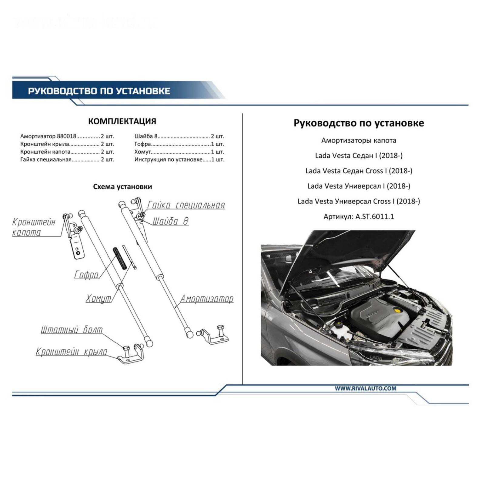 Амортизаторы капота RIVAL, Lada Vesta 2018-н.в., 2 шт., A.ST.6011.1