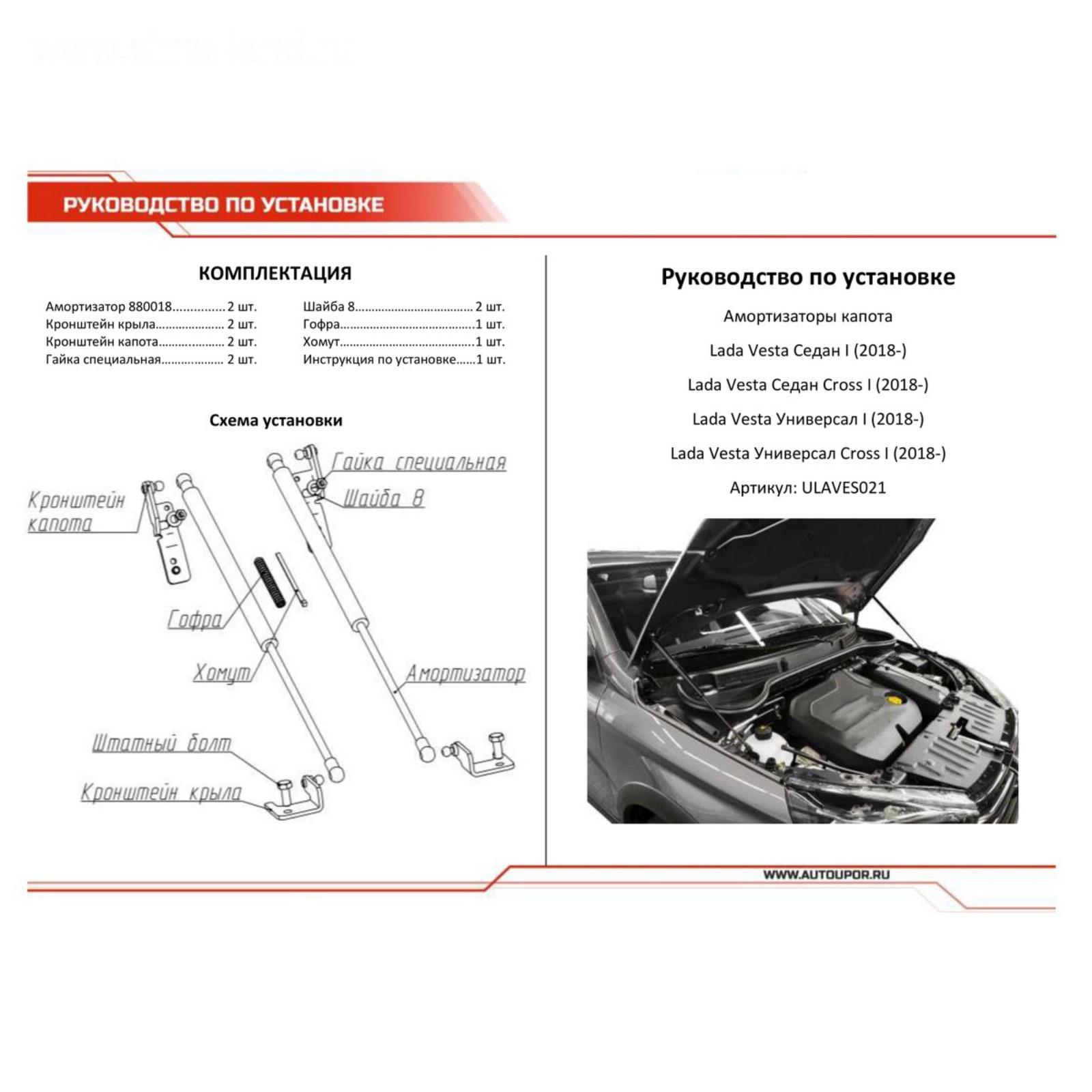 Амортизаторы капота "АвтоУПОР" Lada Vesta 2018-н.в., 2 шт., ULAVES021