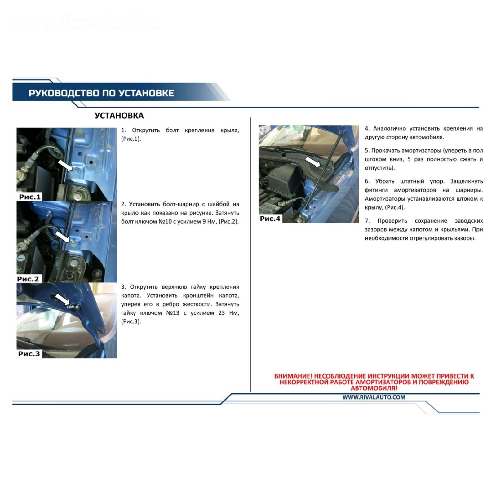 Газовые упоры Rival позволяют легко открыть капот одним движением руки и автоматически зафиксировать его в верхнем положении.