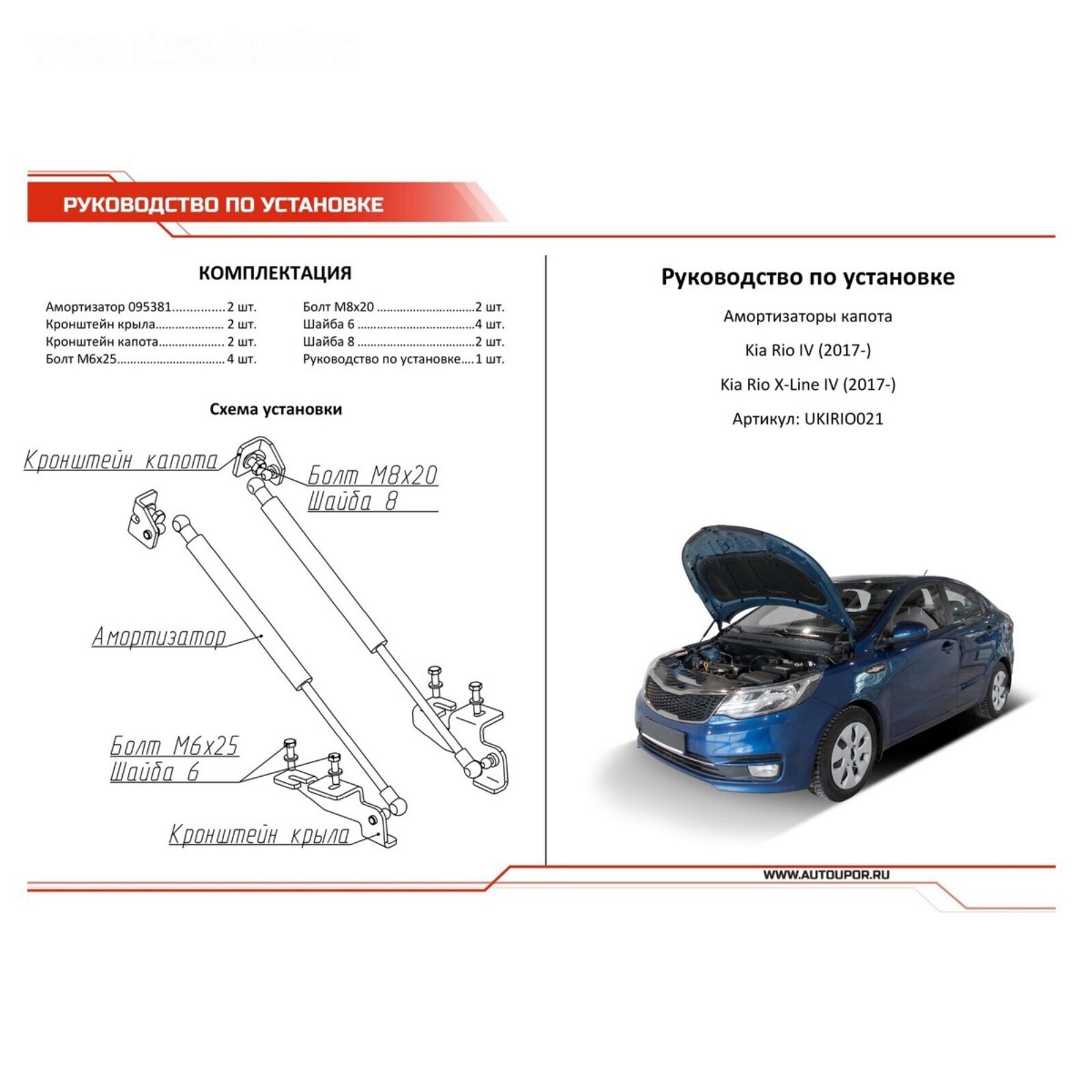 Амортизаторы капота "АвтоУПОР", KIA Rio, Rio X-Line 2017-н.в., 2 шт., UKIRIO021