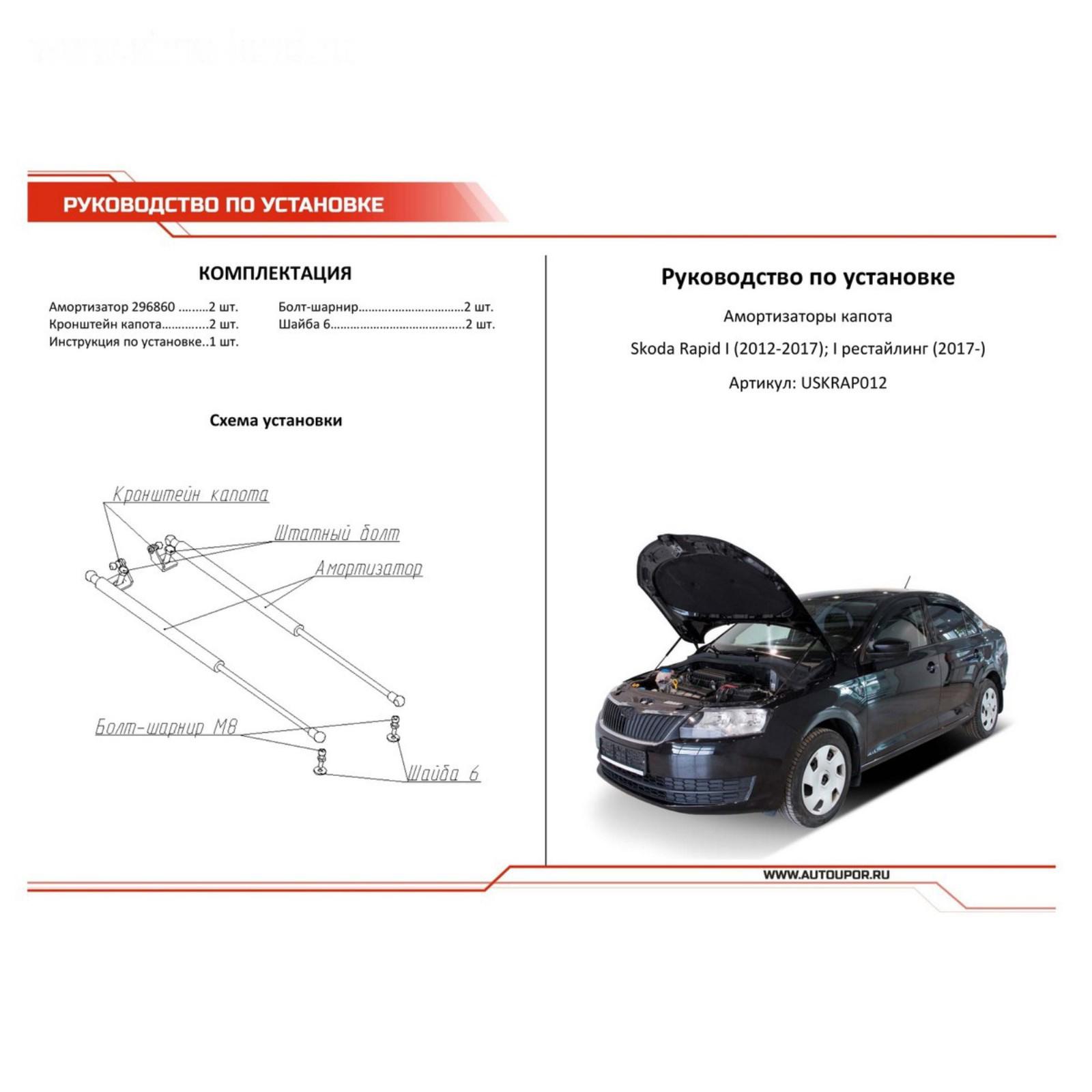 Упоры капота АвтоУПОР для Skoda Rapid I 2012-2017 2017-н.в., 2 шт., USKRAP012