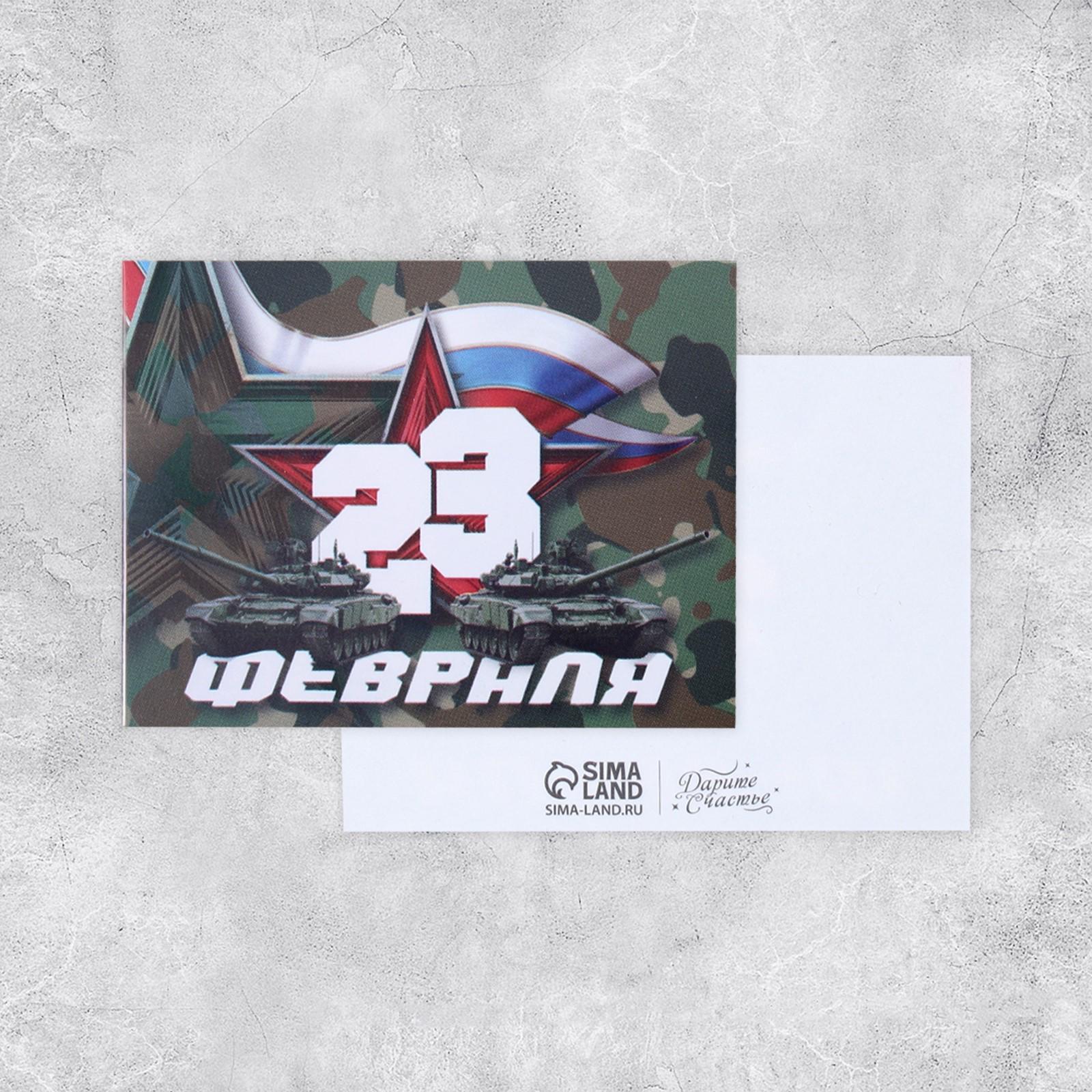 Открытка поздравительная "С 23 Февраля!" танки и камуфляж, 8 х 6 см