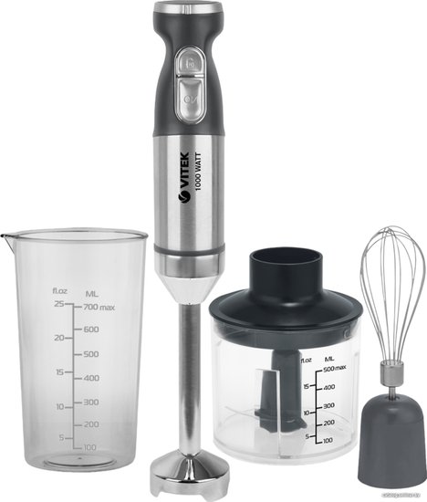 • Комплектация Моторный блокНасадка-блендерРедуктор венчикаНасадка-венчикКрышка-редукторНожЧаша измельчителяСтаканИнструкция