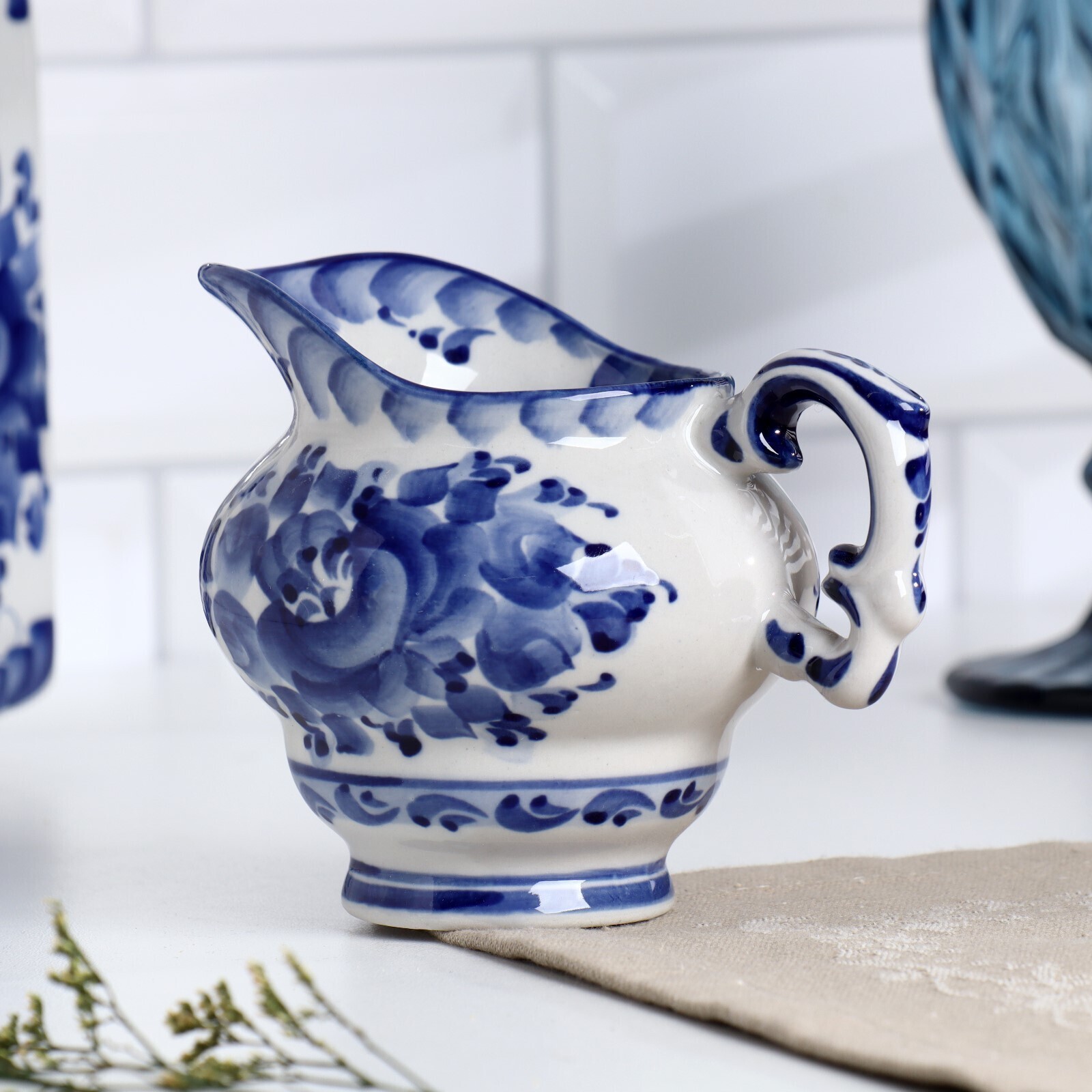 Молочник «Цветок», 12×10×10 см, гжель