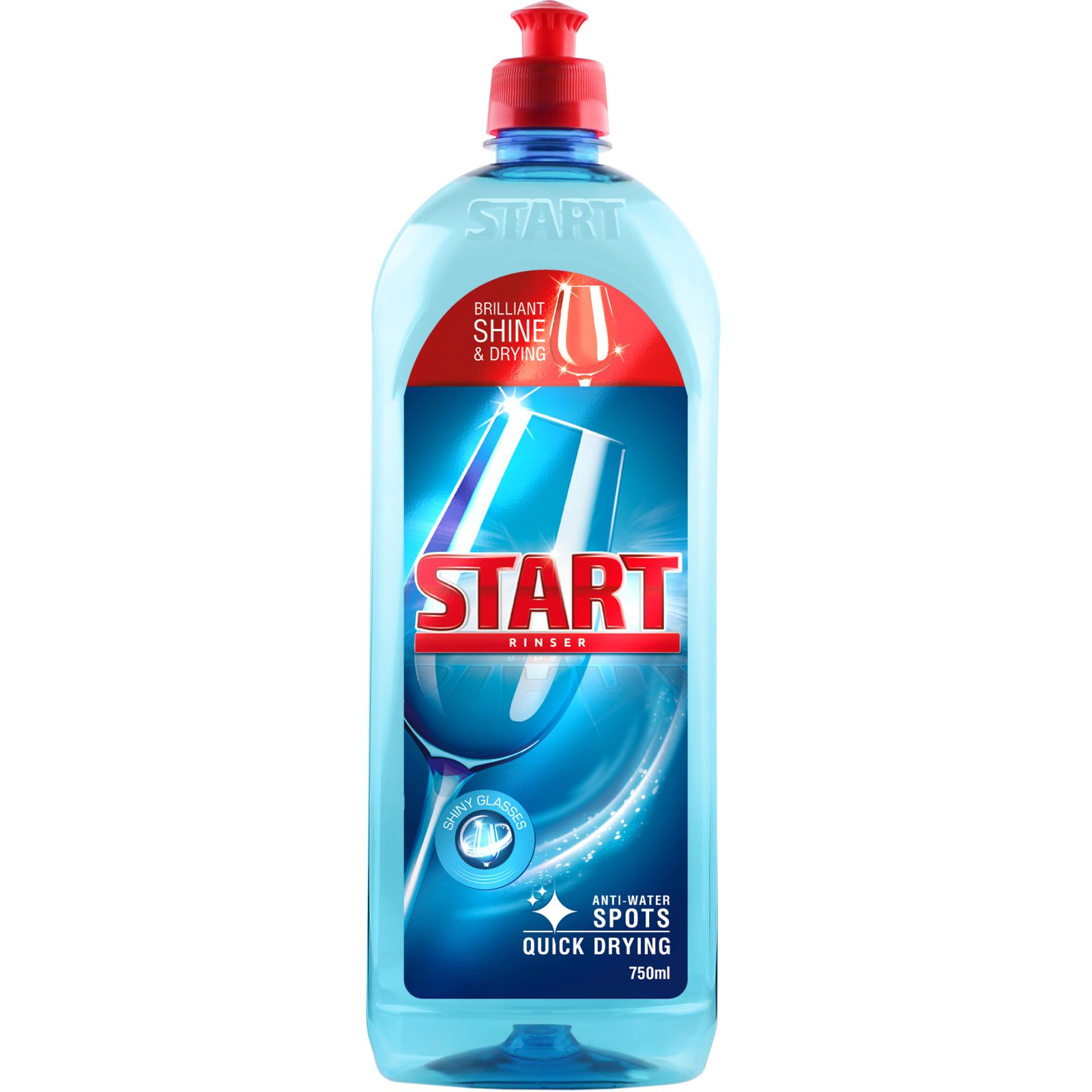 Ополіскувач для посудомийних машин Start піклується про захист і блиск посуду. Покращує процес сушіння й запобігає появі розводів на скляному, неіржавкому та пластиковому посуді.