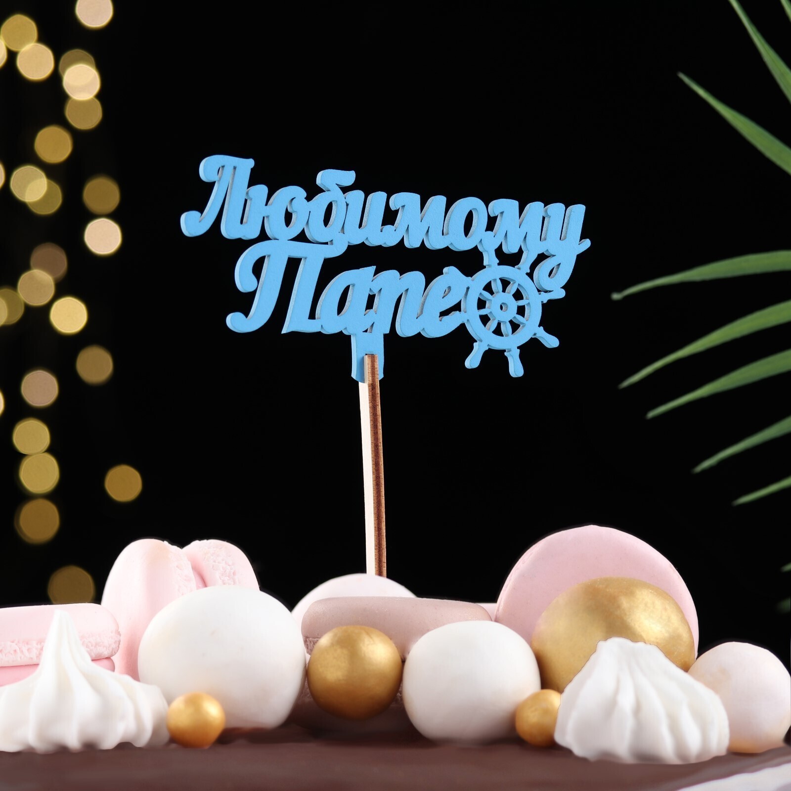 Топпер деревянный "Любимому папе" синий 13х6 см