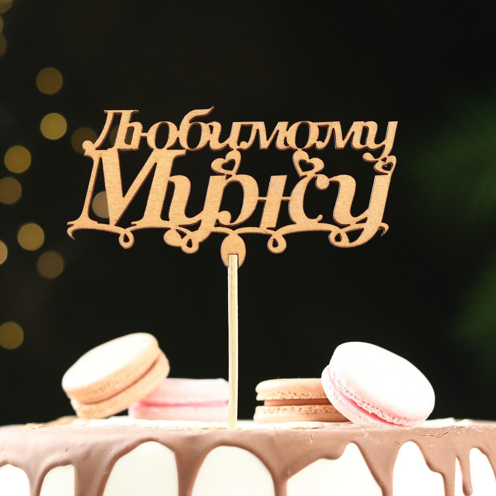 Топпер "Любимому мужу, с вензелем", золотой, 13×6.5 см Дарим Красиво