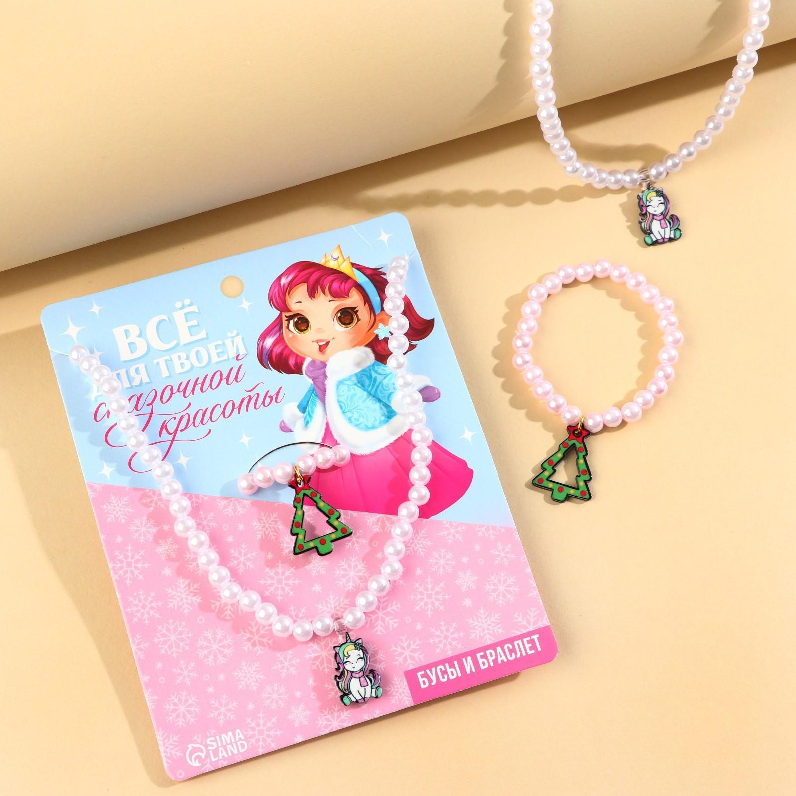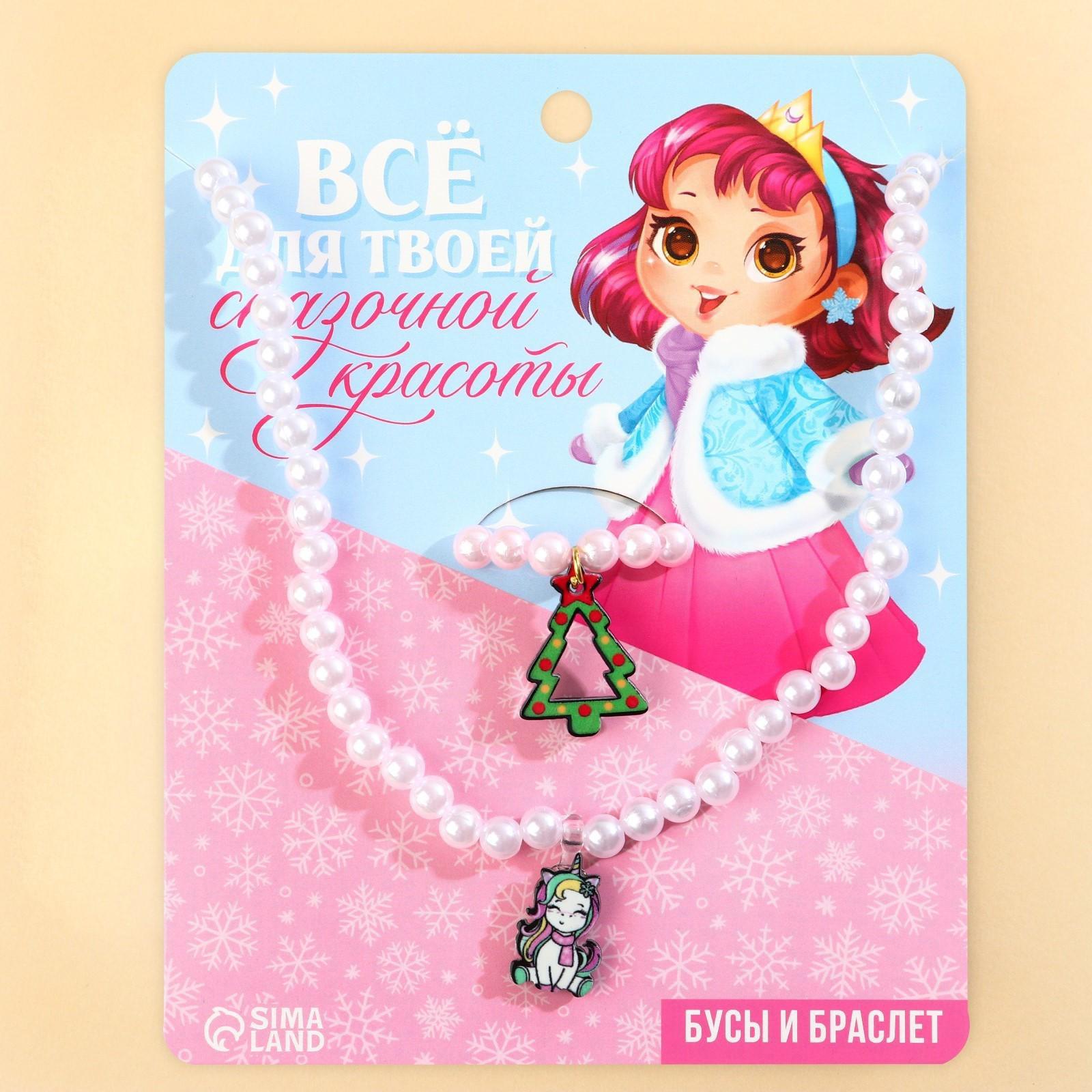 Набор новогодней детской бижутерии, который включает в себя бусы и браслет. Такое новогоднее колье - это отличный аксессуар, который дополнит любой новогодний наряд (праздничное платье, костюм, пиджак или блузку). Также детские бусы и браслет можно преподнести в качестве подарка ребенку, сестре,племяннице, внучке или дочери, ведь упаковано оно в подарочную упаковку.