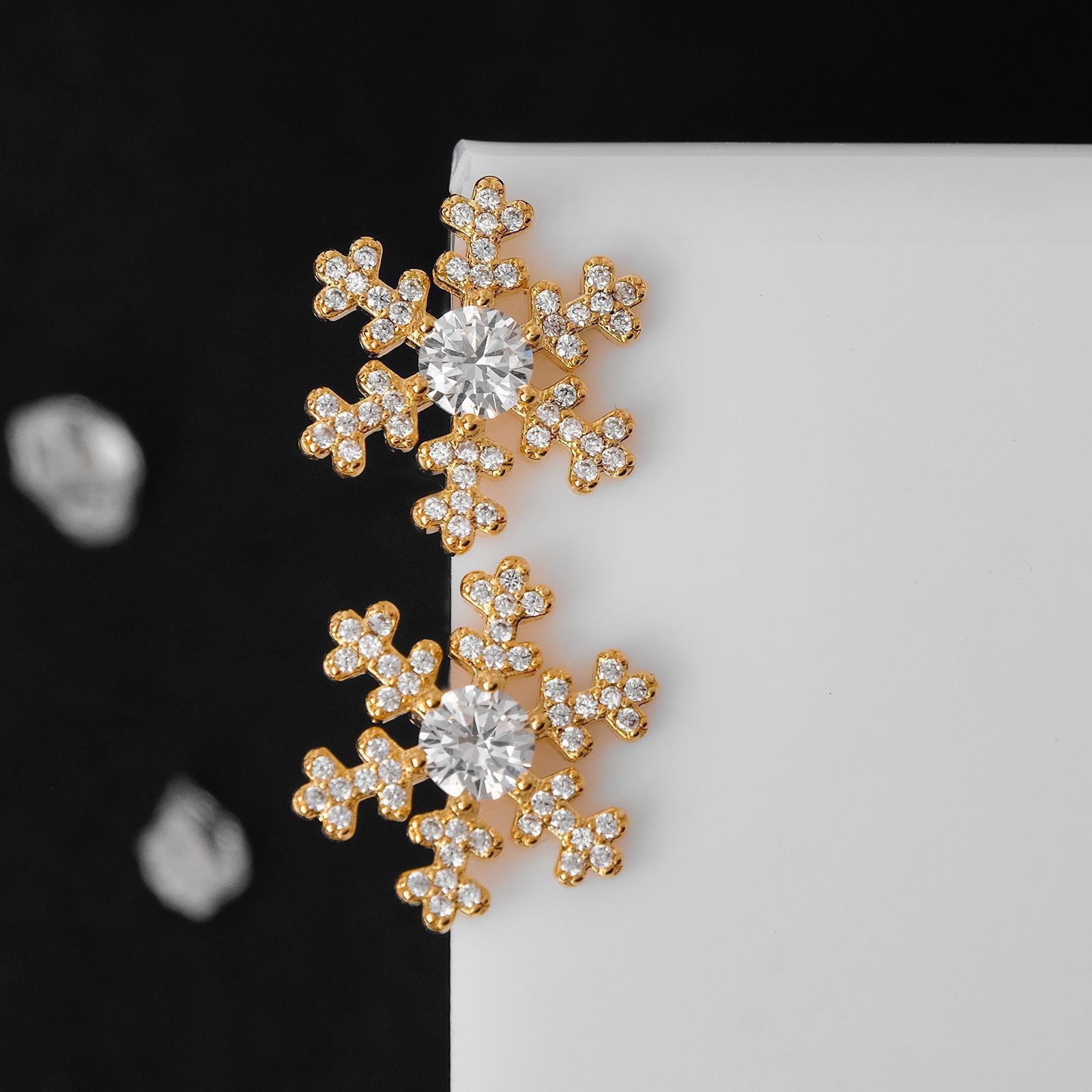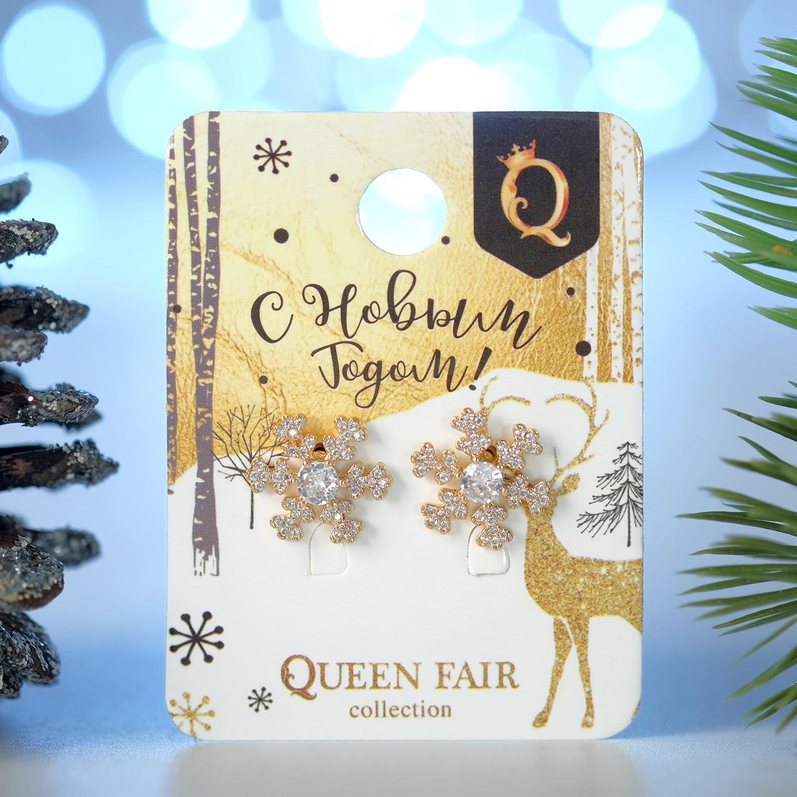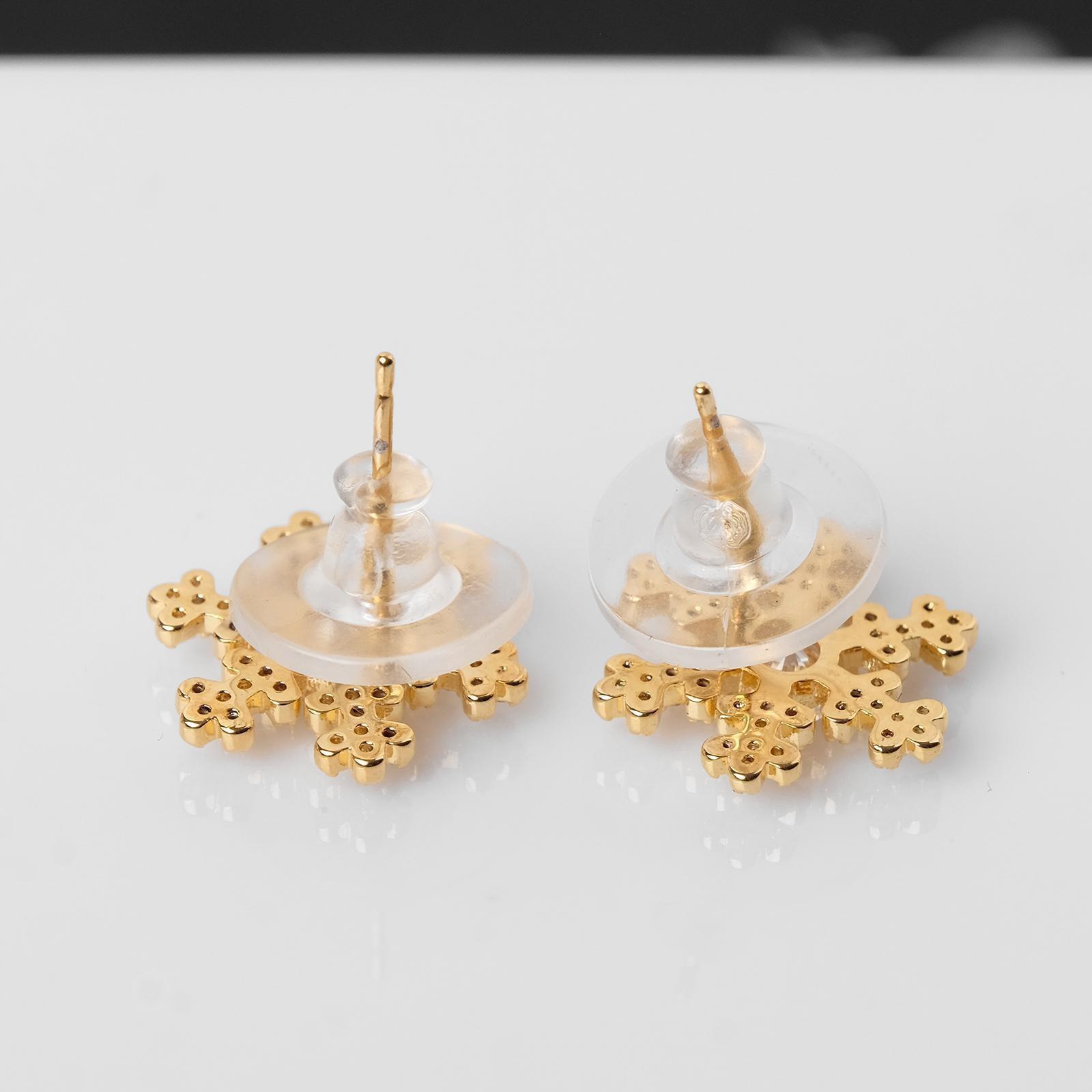 Серьги со стразами "Новогодние" снежинки, метель, цвет белый в золоте