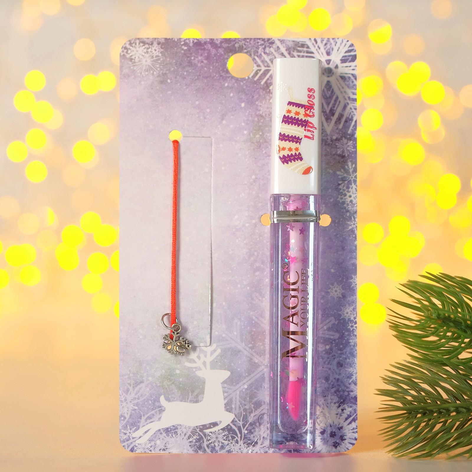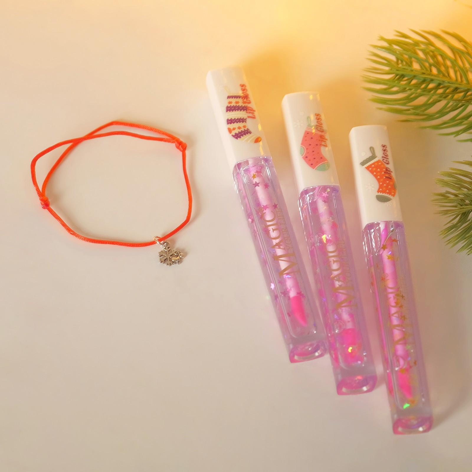 Набор 2 предмета: браслет, блеск для губ "Новогодний" снежинка, цвет красный с серебром
