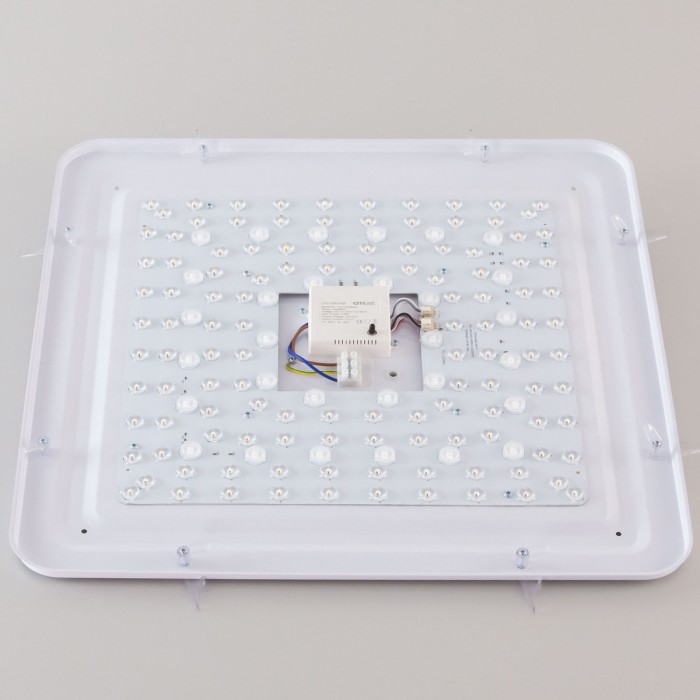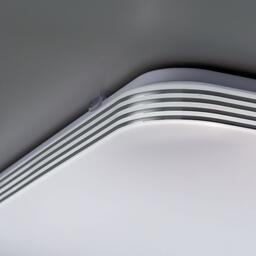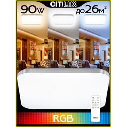 Светодиодная потолочная люстра Citilux Симпла CL714K900G с яркой цветной RGB подсветкой всего плафона. Светильник плоский, квадратной формы. Основание металлическое, плафон белый матовый из оптического полимера, с изящной хромированной окантовкой. Мощность 90Вт, световой поток 7700Лм. Модель с пультом дистанционного управления. Доступна плавная регулировка яркости от 100 до 10%. Плавная регулировка цветовой температурой освещения в диапазоне от 3000К до 5500К, позволяет настроить любые оттенки теплого, нейтрального или холодного света. Цветная RGB подсветка имеет различные режимы работы. Таймер - функция отсроченного на 20сек. выключения. Четыре кнопки памяти позволяют сохранить настроенные режимы работы и включать их с пульта или обычным настенным выключателем. Пульт ДУ инфракрасный в комплекте, тип батареек ААА (батарейками не комплектуется).