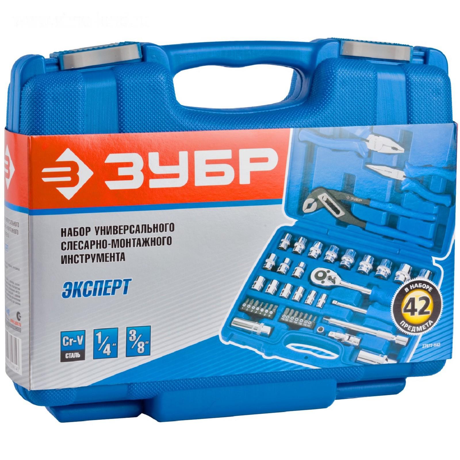 Набор инструментов "ЗУБР" 27672-h42, 42 предмета, 8-22 мм, 1/4", 3/8"