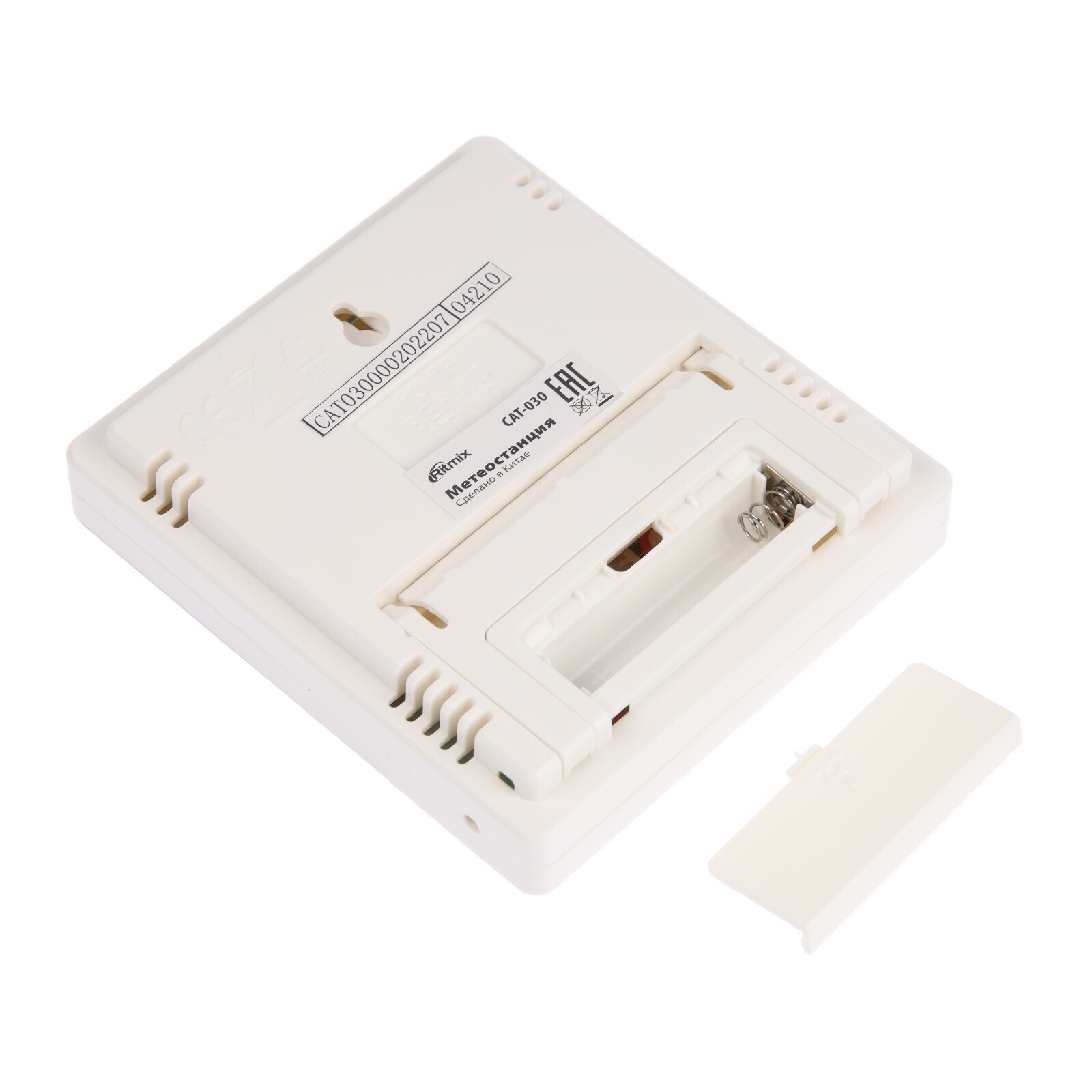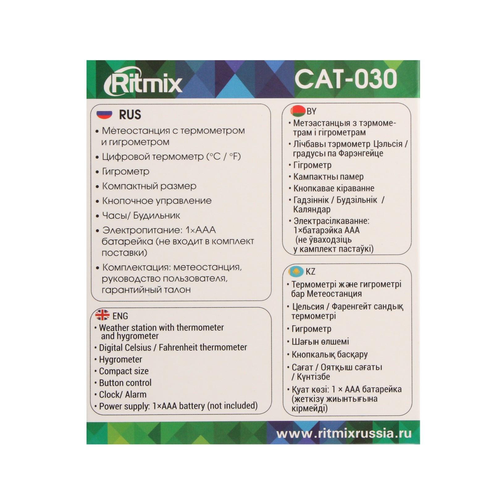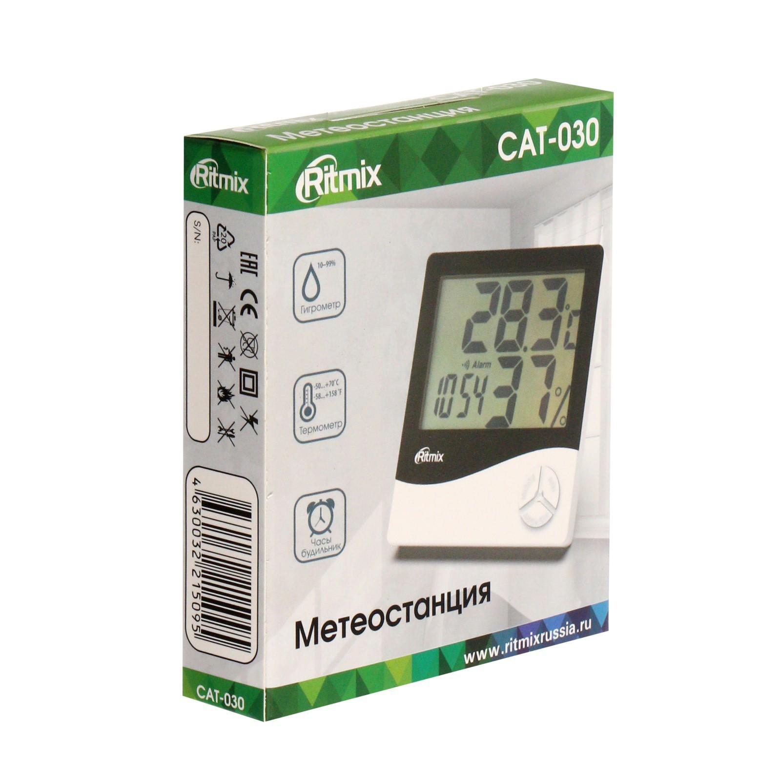 Метеостанция RITMIX CAT-030, комнатная, термометр, гигрометр, будильник, 1хААА, белая