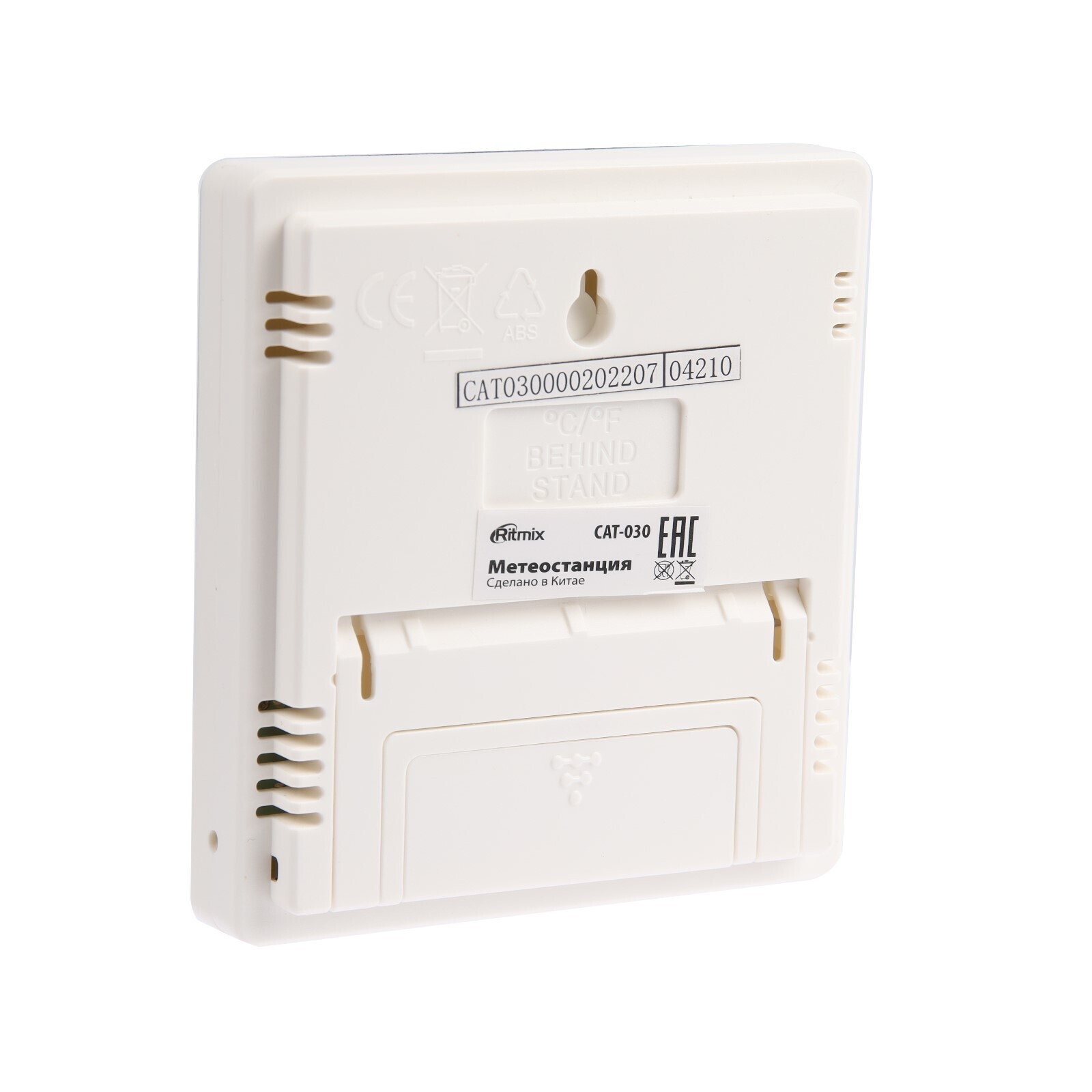 Метеостанция RITMIX CAT-030 предназначена для измерения температуры и влажности в помещении. Имеет компактный корпус и жидкокристаллический дисплей с большими цифрами. Работает от одной батарейки типа ААА, которой хватит на несколько месяцев.
