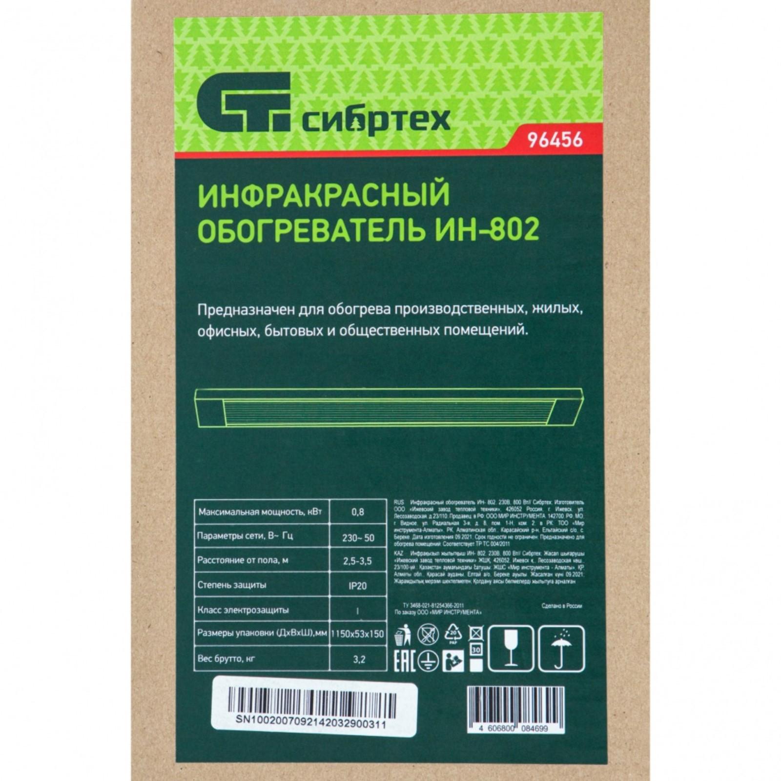 Инфракрасный обогреватель «СИБРТЕХ» ИН-802, 230 В, 800 Вт