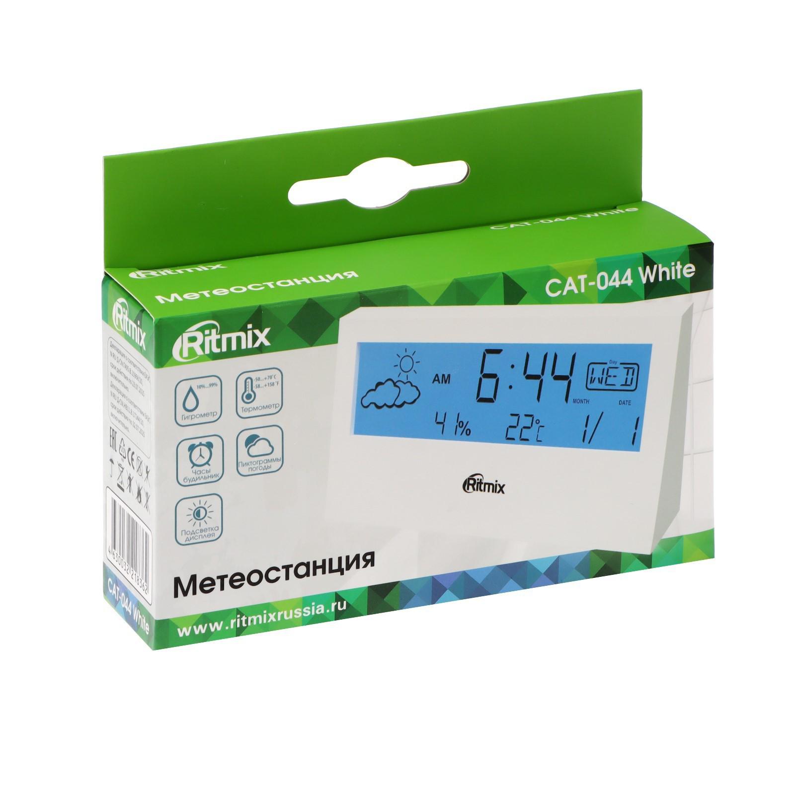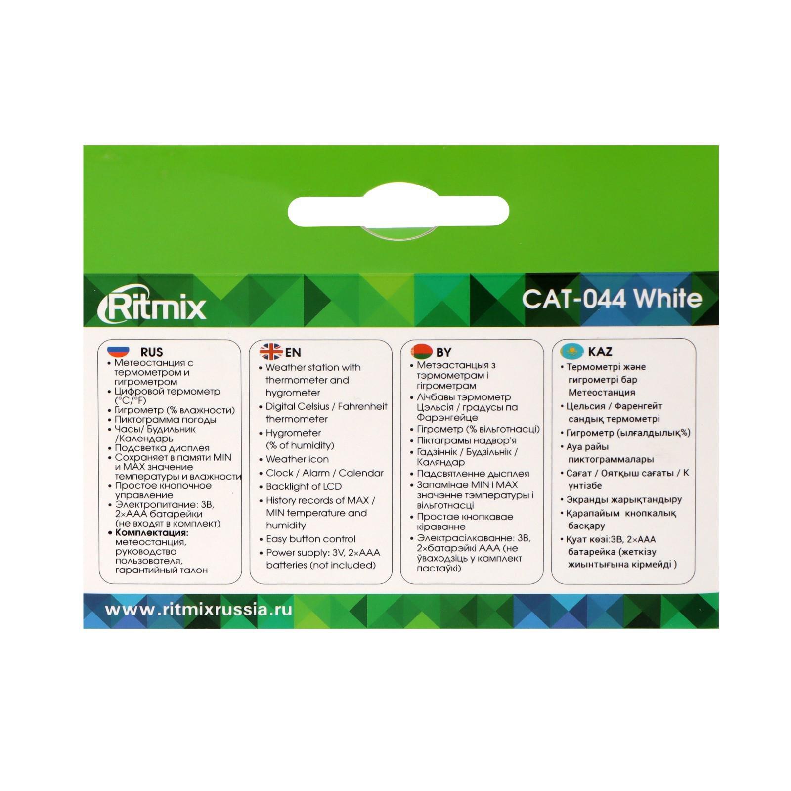 Метеостанция RITMIX CAT-044, комнатная, термометр, гигрометр, будильник, 2хААА, белая