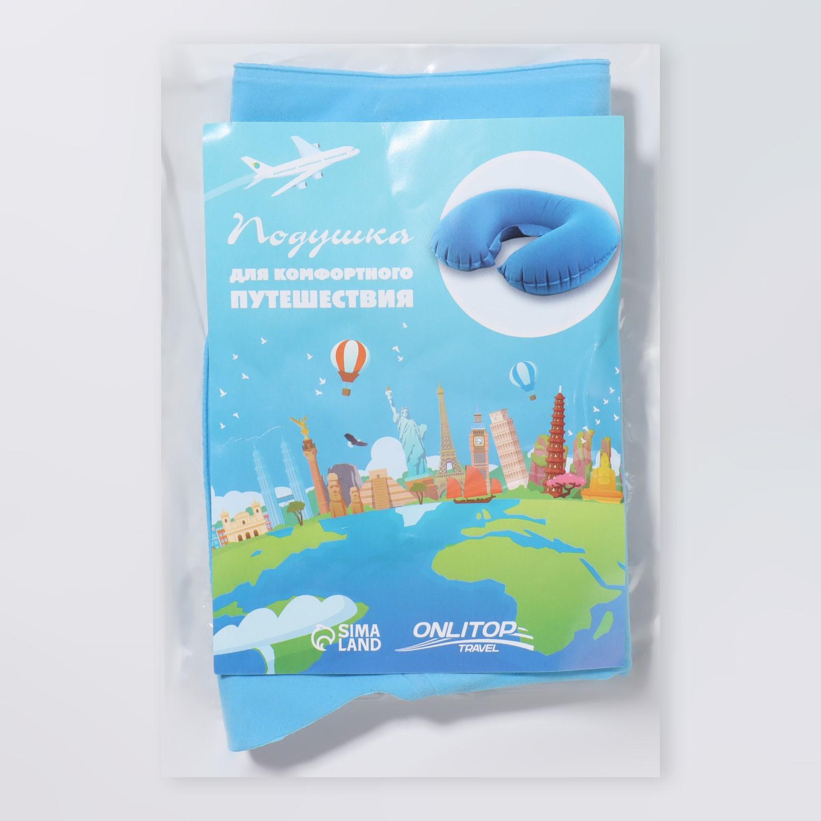 Подушка для шеи дорожная, надувная, 38 × 24 см, цвет голубой
