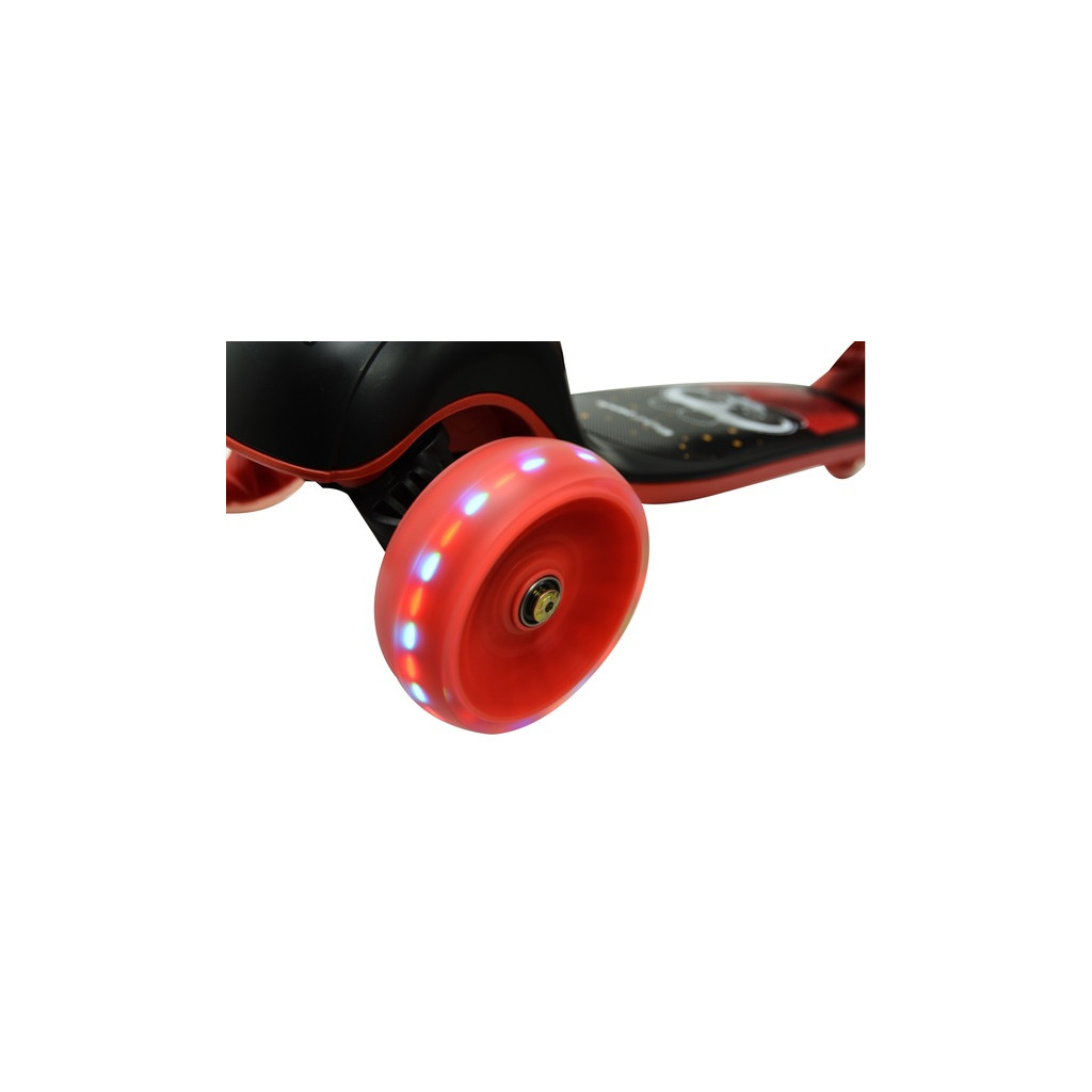 Самокат зі складаною конструкцією. Регульована ручка за висотою. Рекомендований вік: від 3 років. Вантажопідйомність: 50 кг. Розмір: 58 х 25.5 х 70-81 см. Розмір переднього колеса: 120 мм, розмір заднього колеса: 80 мм. Колеса самоката світяться під час руху. Вага: 3.4 кг. Матеріал: алюміній, нейлон, поліпропілен, ТПР-пластик, колеса: поліуретан.