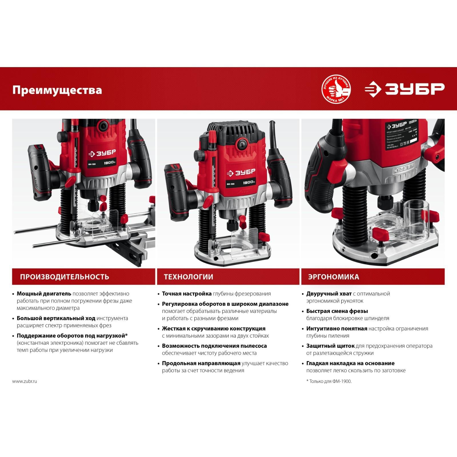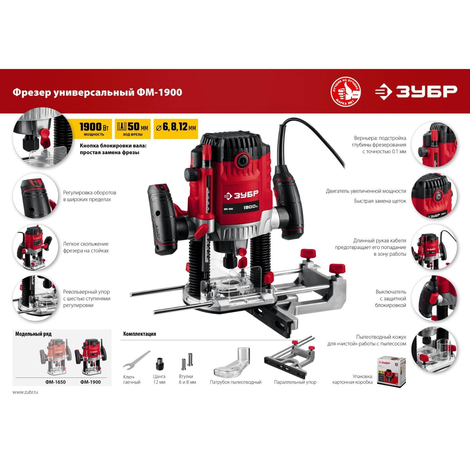 Фрезер ФМ-1900, 220 В, 1900 Вт, 23000 об/мин, ход 50 мм, фреза max=74 мм