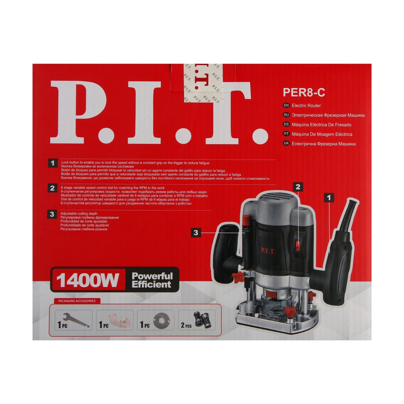 Фрезер P.I.T. PER8-C, 1400 Вт, 16000-30000 об/мин, цанга 6/8 мм, ход фрезы 55 мм, упор
