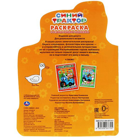 Раскраска «Синий трактор» ТМ «УМка» подготавливает руку к письму и развивает: