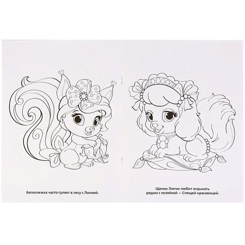 Малыш будет рад повстречаться на страницах раскраски с милыми сказочными питомцами принцесс. В этой занимательной книге он найдёт красивые картинки с чёткими контурами и описания к ним.