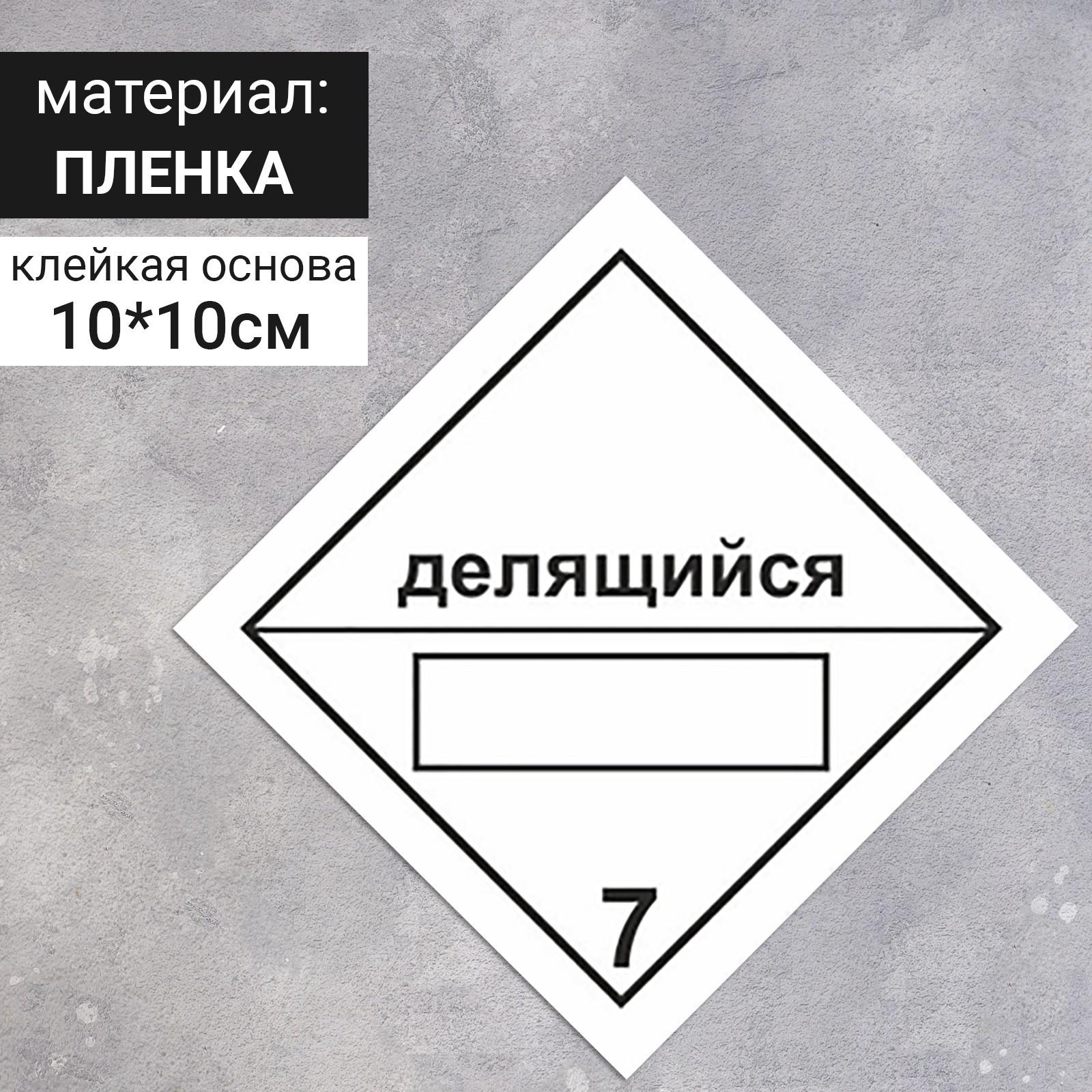 Наклейка "Радиоактивные материалы, делящийся материал класса 7, радиоактивные материалы" (7 класс опасности), 100х100 мм