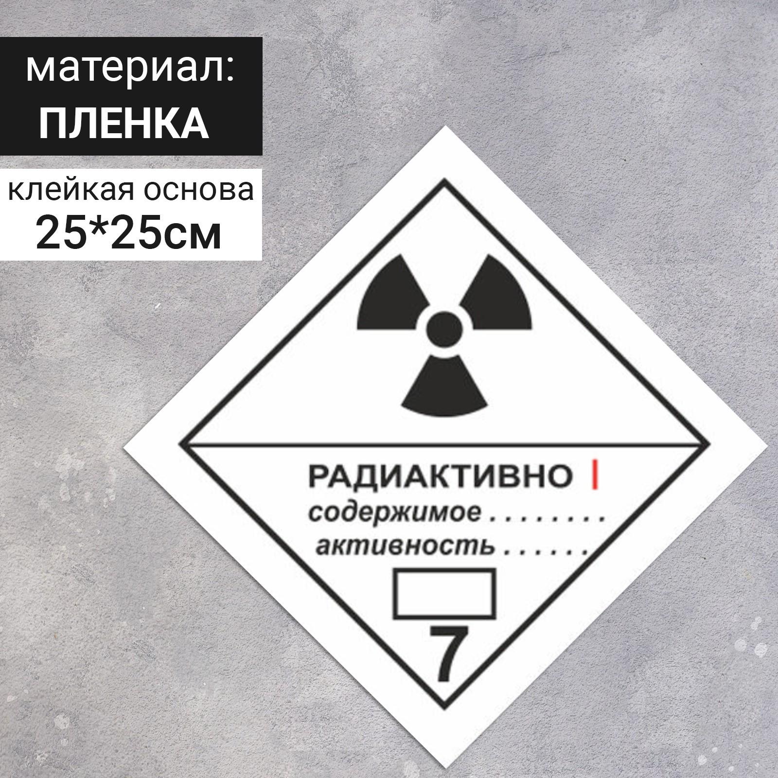 Наклейка "Радиоактивные материалы, категория I", Радиоактивные материалы (7 класс опасности), цвет белый, 250х250 мм
