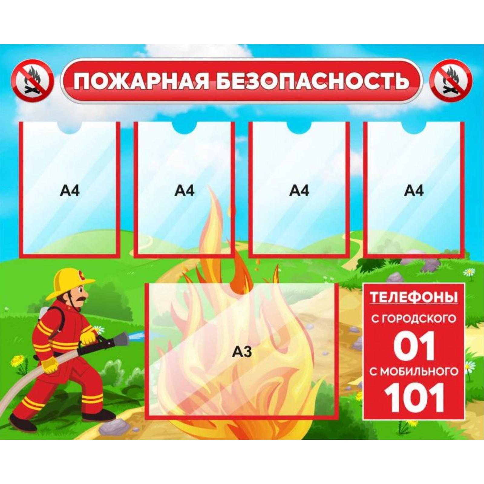 Информационный стенд пожарной безопасности 5 плоских карманов, 120см*90см