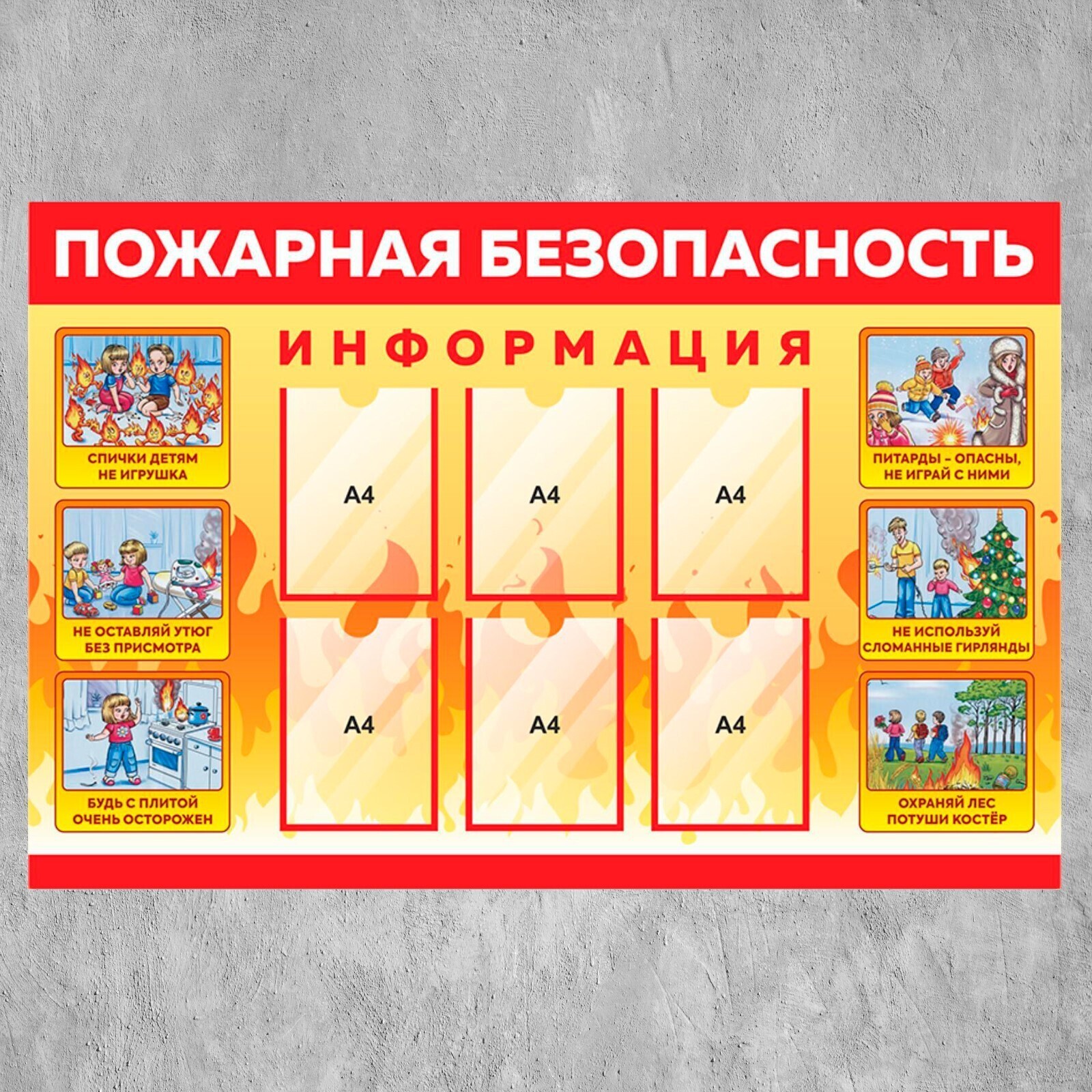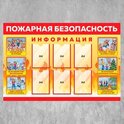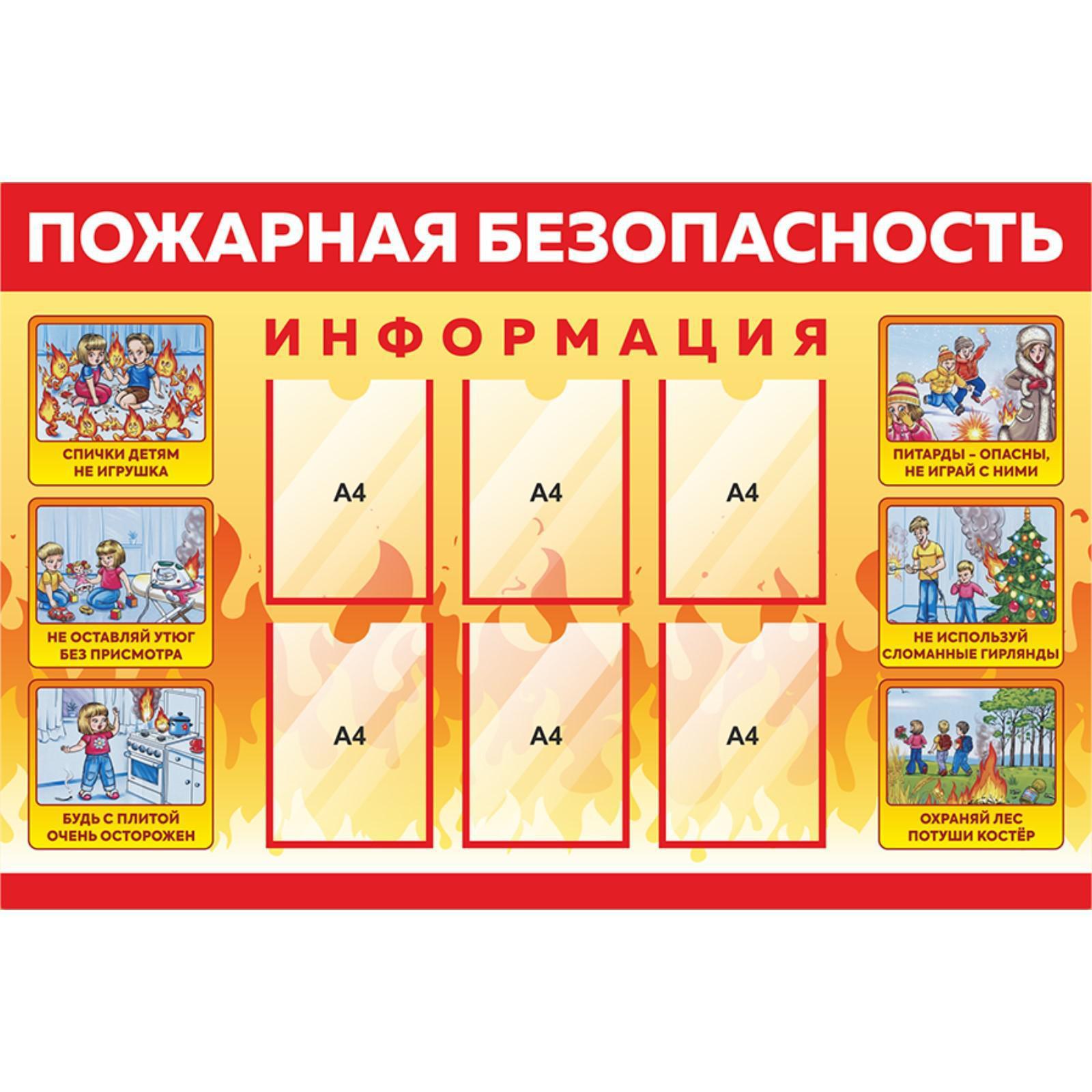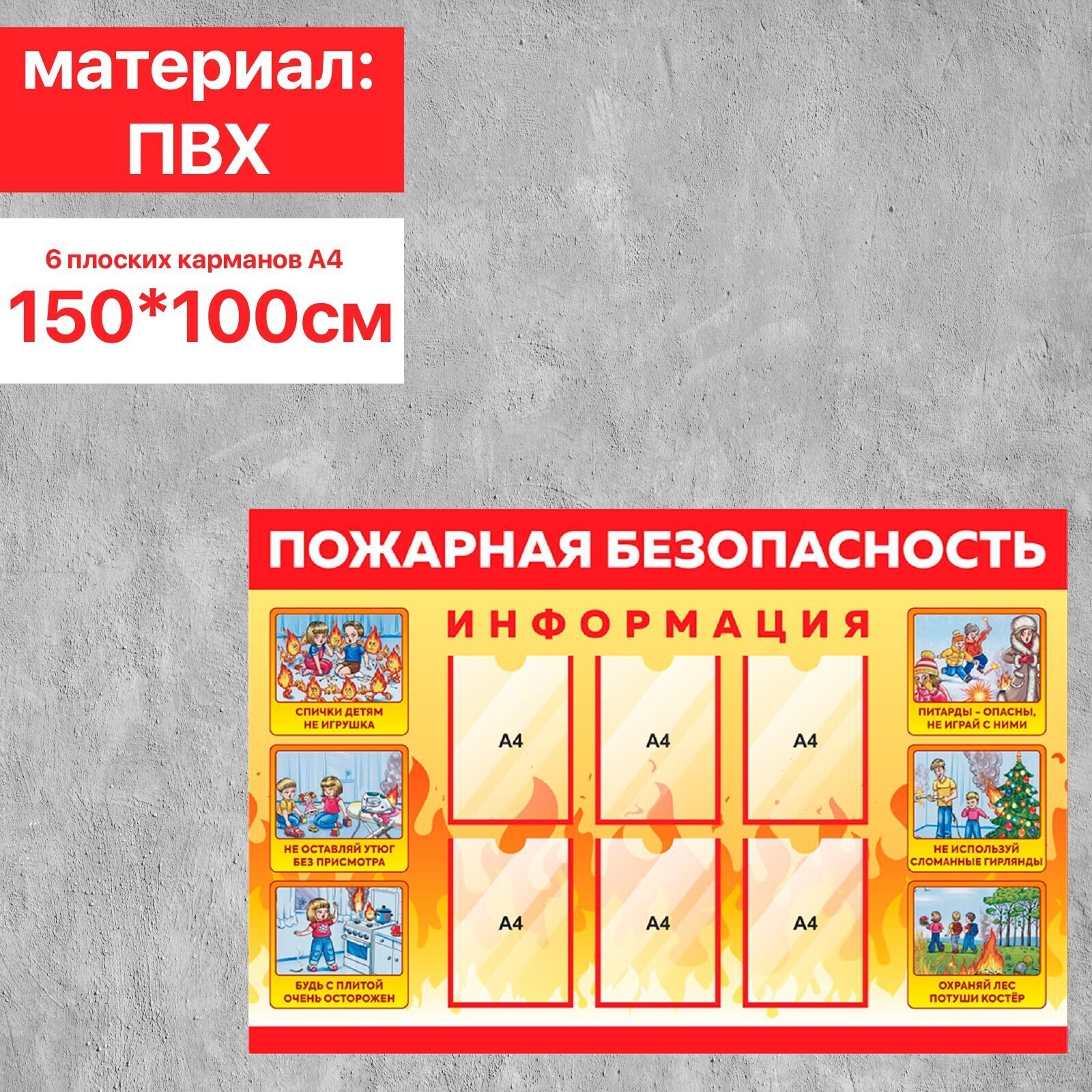 Информационный стенд пожарной безопасности 6 плоских карманов, 150см*100см