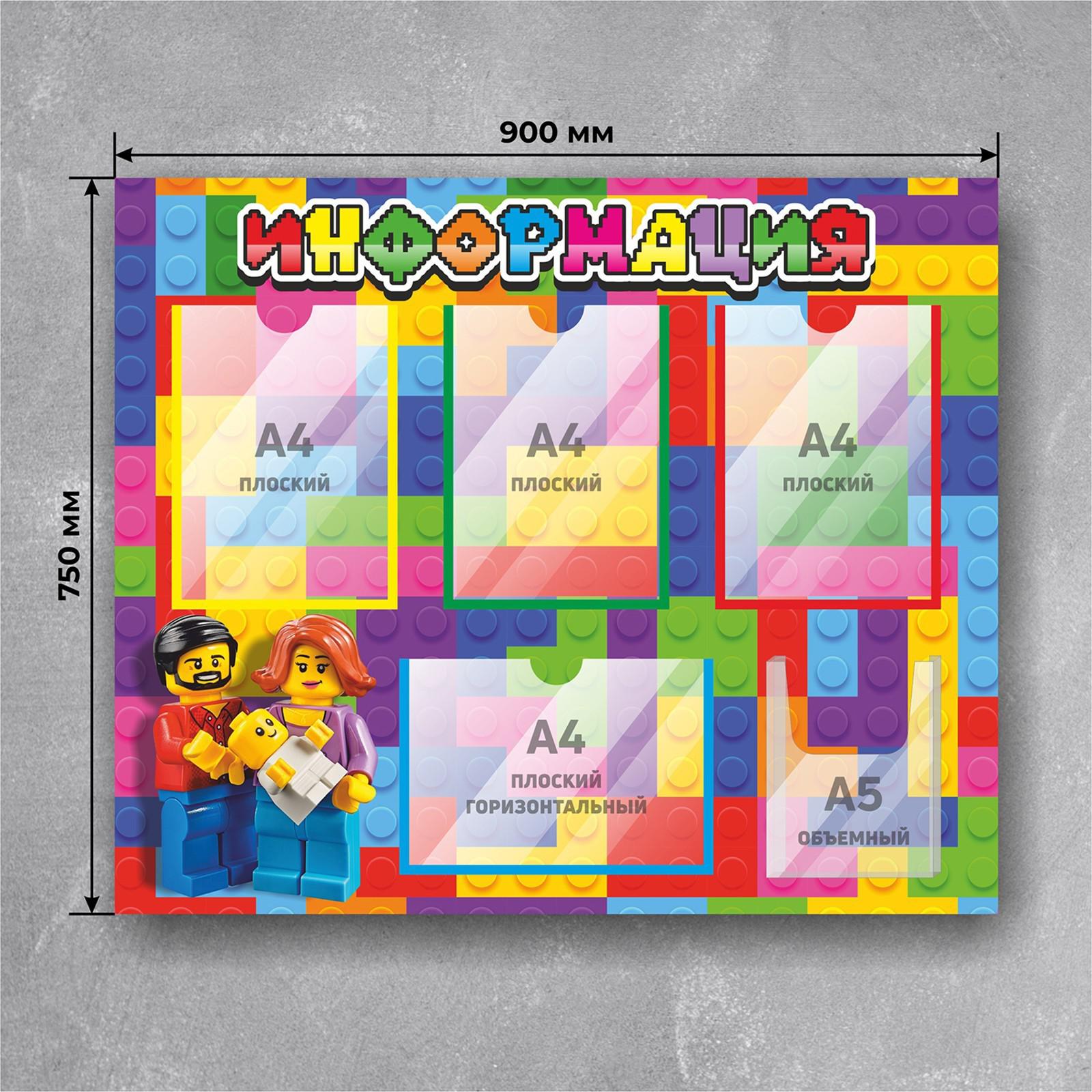 Информационный стенд "Информация цветная" 90*75, 4 плоск кармана А4, 1 объёмн А5