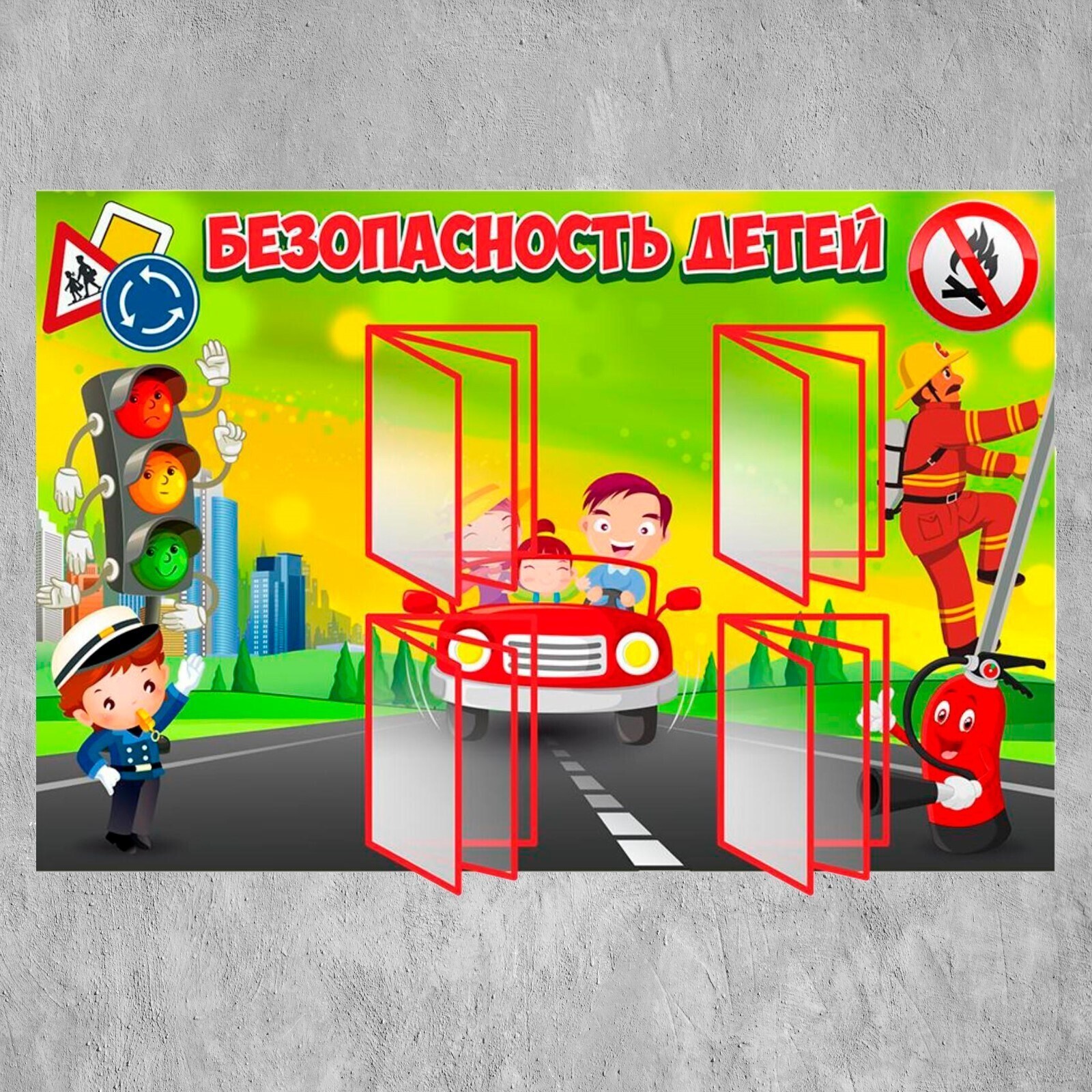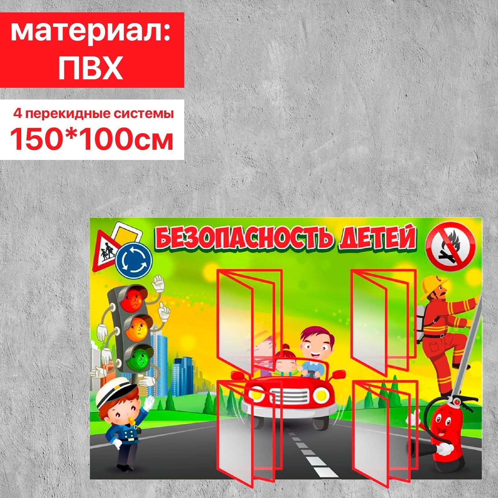 Информационный стенд "Безопасность детей" 4 перекидные системы, 150см*100см