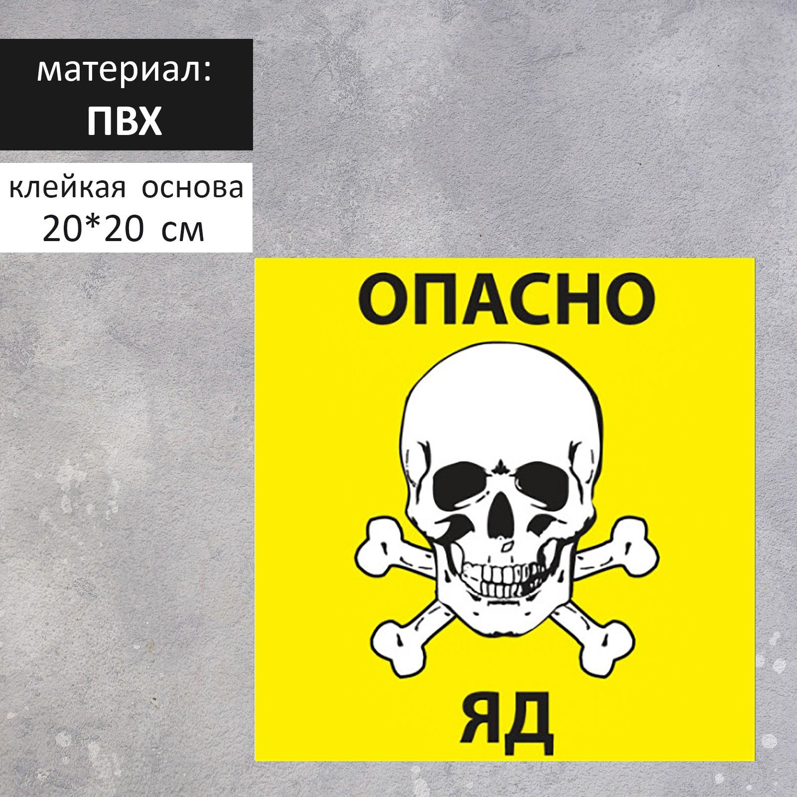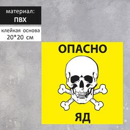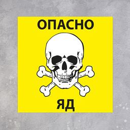 Табличка "Опасно яд" 20 х 20 см, цвет жёлтый, клейкая основа