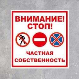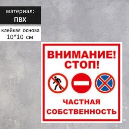 Табличка "ВНИМАНИЕ ЧАСТНАЯ СОБСТВЕННОСТЬ" 100х100, клейкая основа