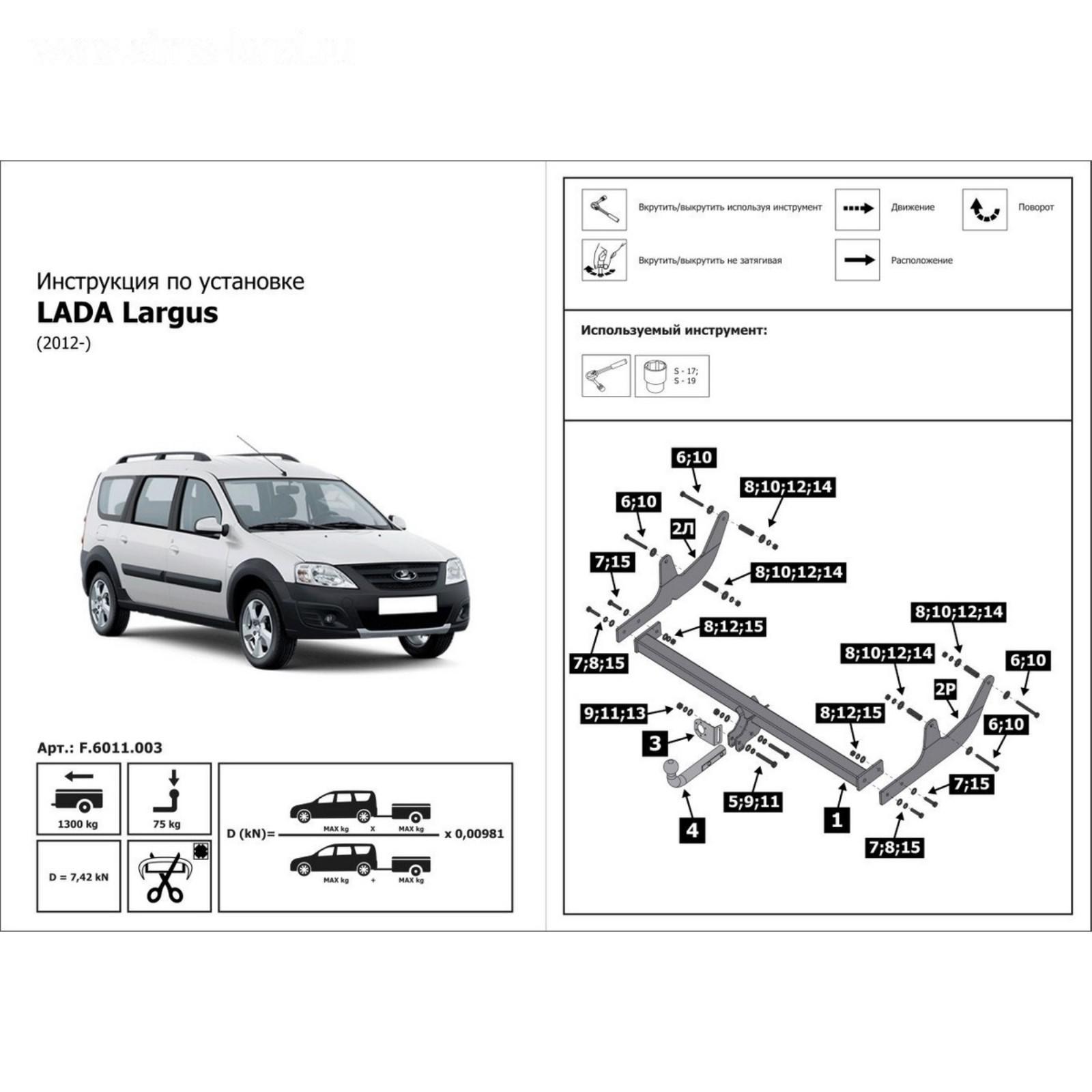 Фаркоп BERG, Lada Largus, 2012-н.в., шар A, 1300/75 кг., F.6011.003