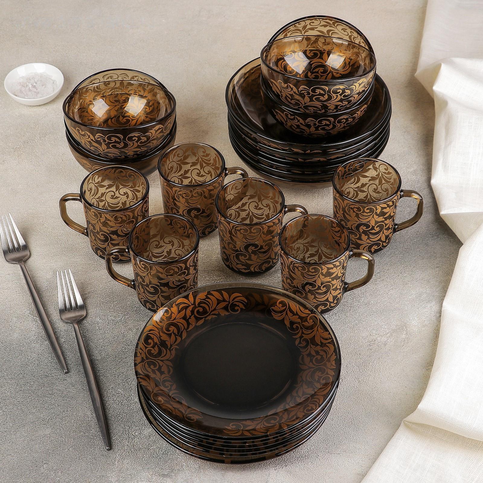 Набор столовый «Эмилия», 24 предмета, цвет коричневый