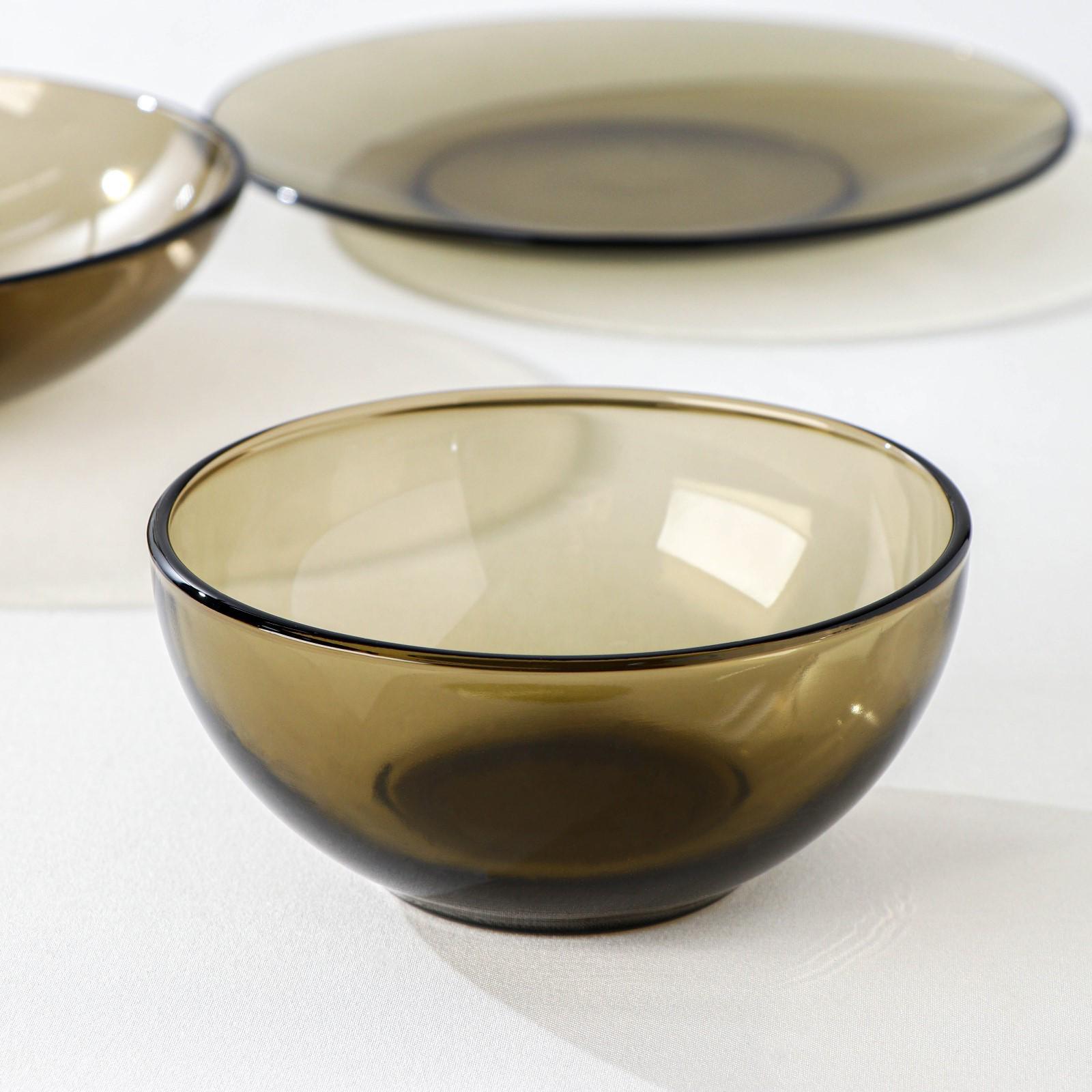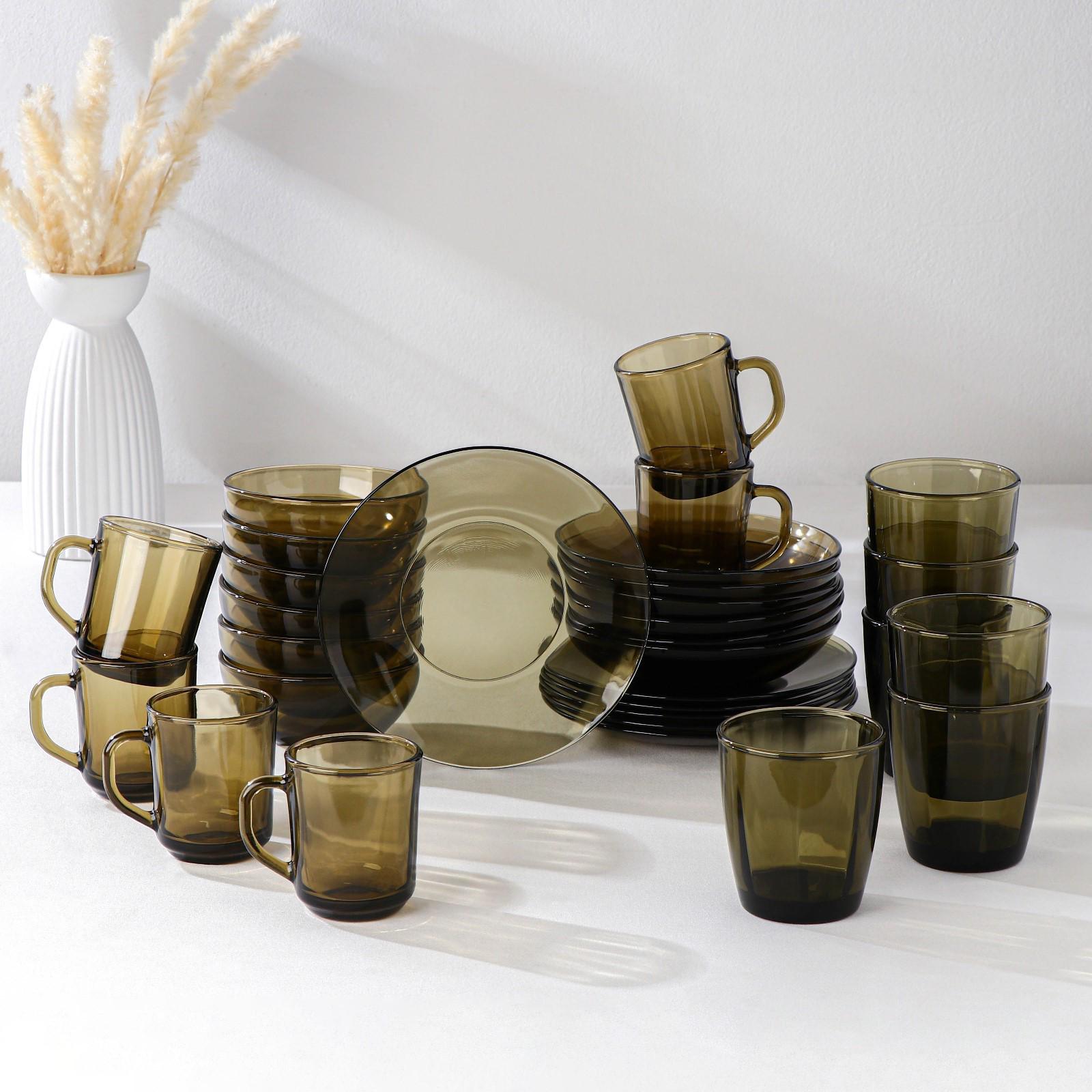 Набор посуды из стекла отличается практичностью и эффектным внешним видом. Сервиз прекрасно подойдёт для повседневного использования и праздничных мероприятий.
