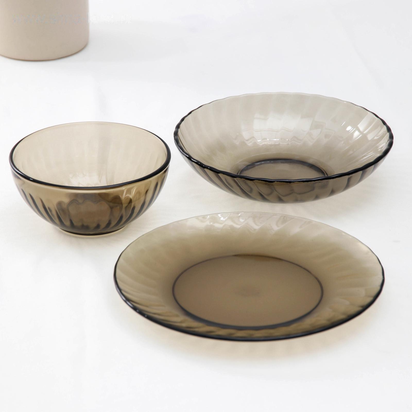 Набор посуды из стекла отличается практичностью и эффектным внешним видом. Сервиз прекрасно подойдёт для повседневного использования и праздничных мероприятий.