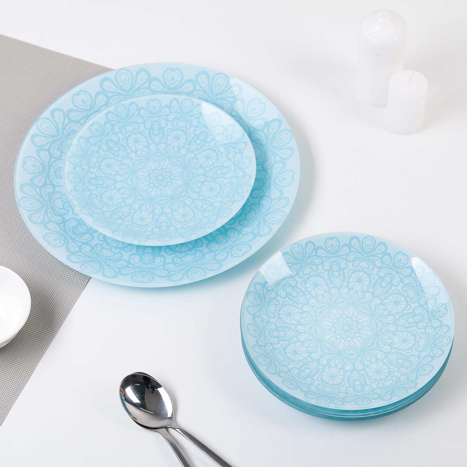 Сервиз столовый «Кружево», 7 предметов: 6 тарелок d=20 см, 1 тарелка d=30 см, цвет голубой