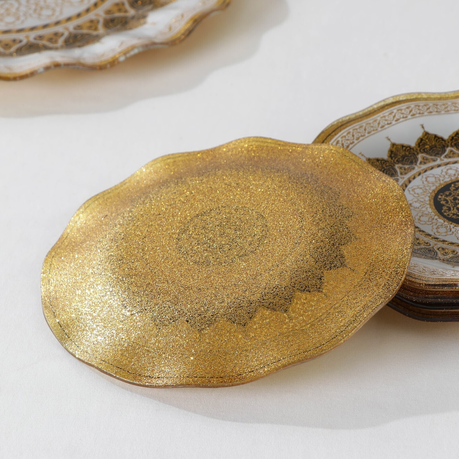 Набор столовый «Мехенди», 7 предметов (d=30 см - 1 шт, d=18 см - 6 шт), цвет белый с золотым