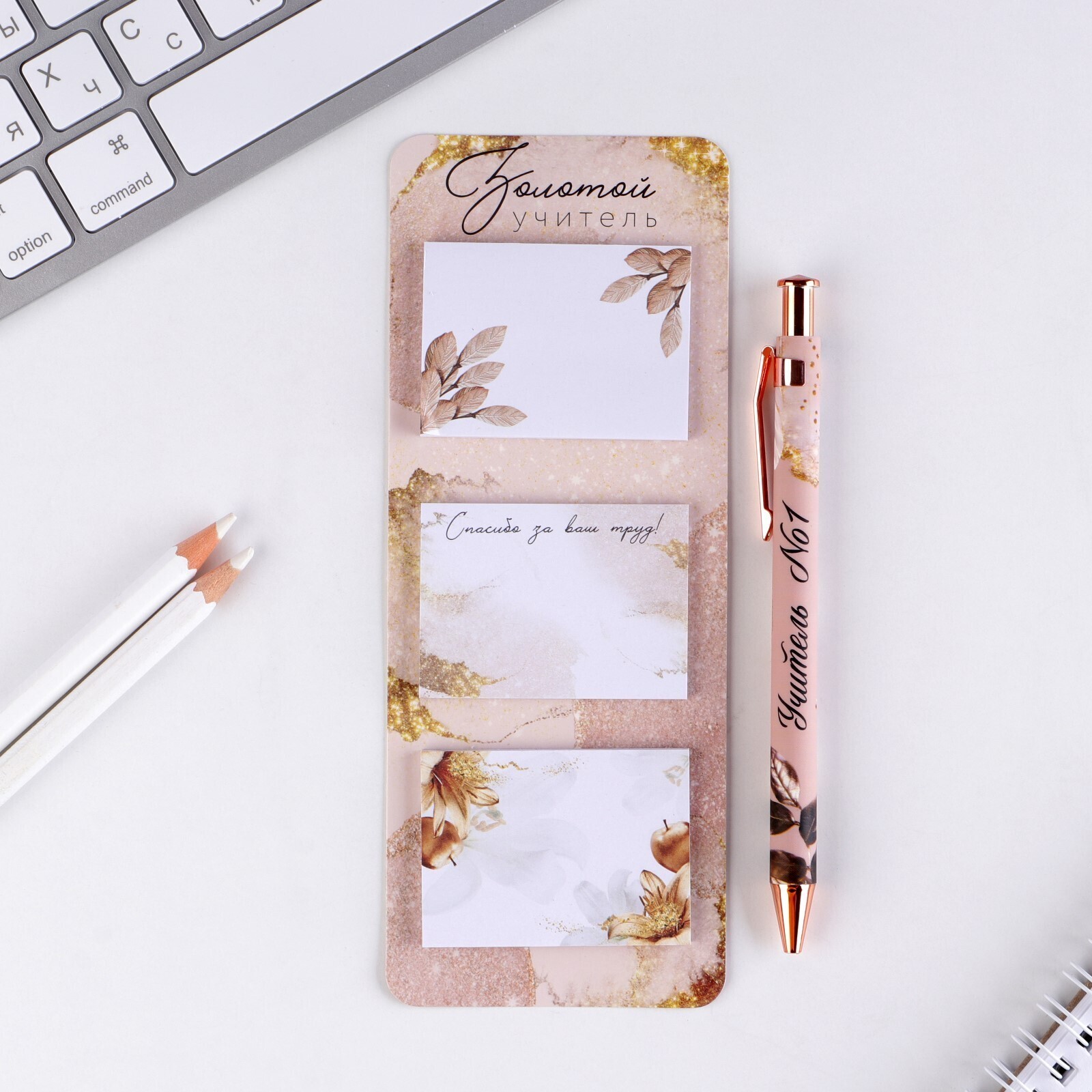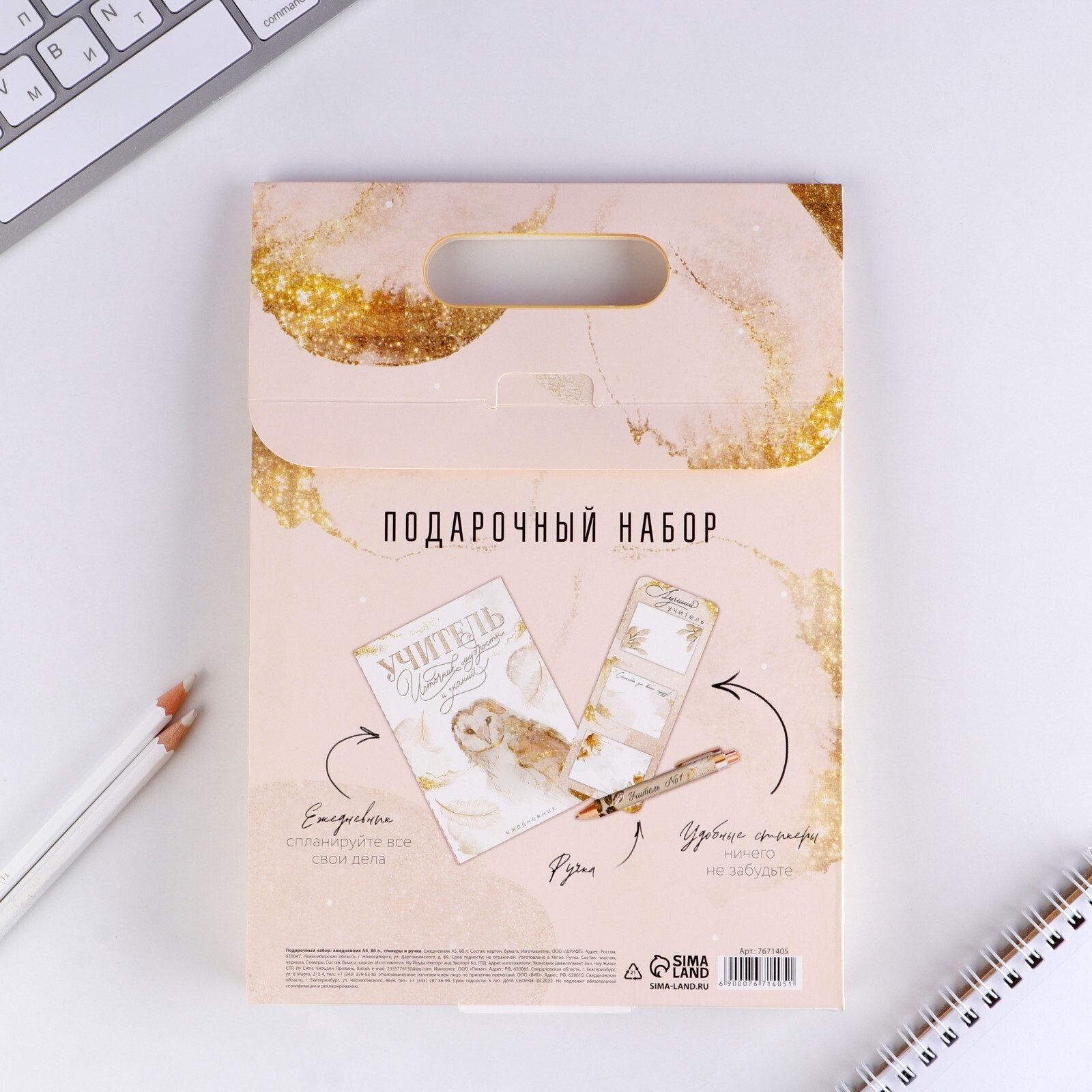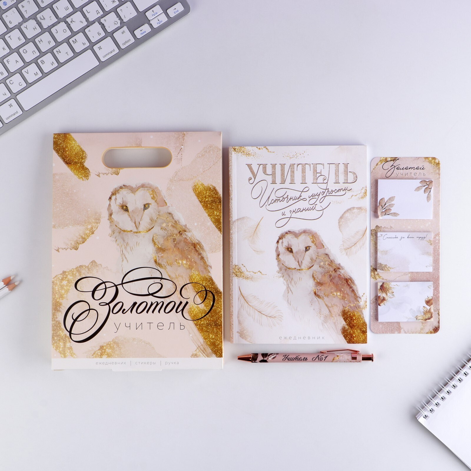 Подарочный набор «Золотой учитель»: ежедневник А5, 60 листов, стикеры и ручка шариковая, синяя паста