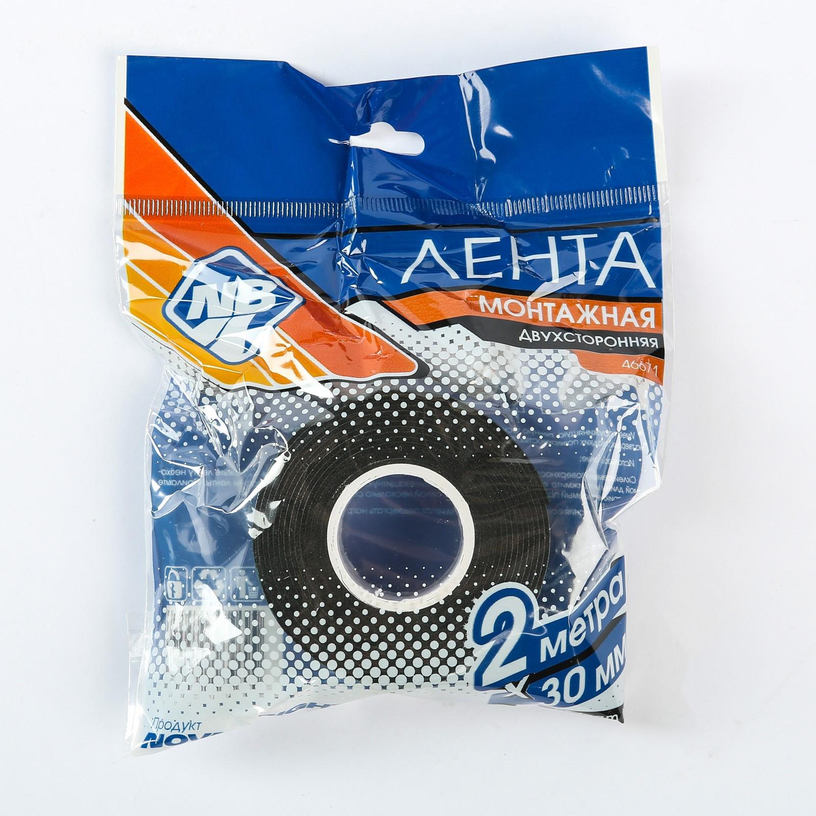 Лента клеящая двусторонняя Nova Bright, на вспененной основе, 30 мм х 2 м