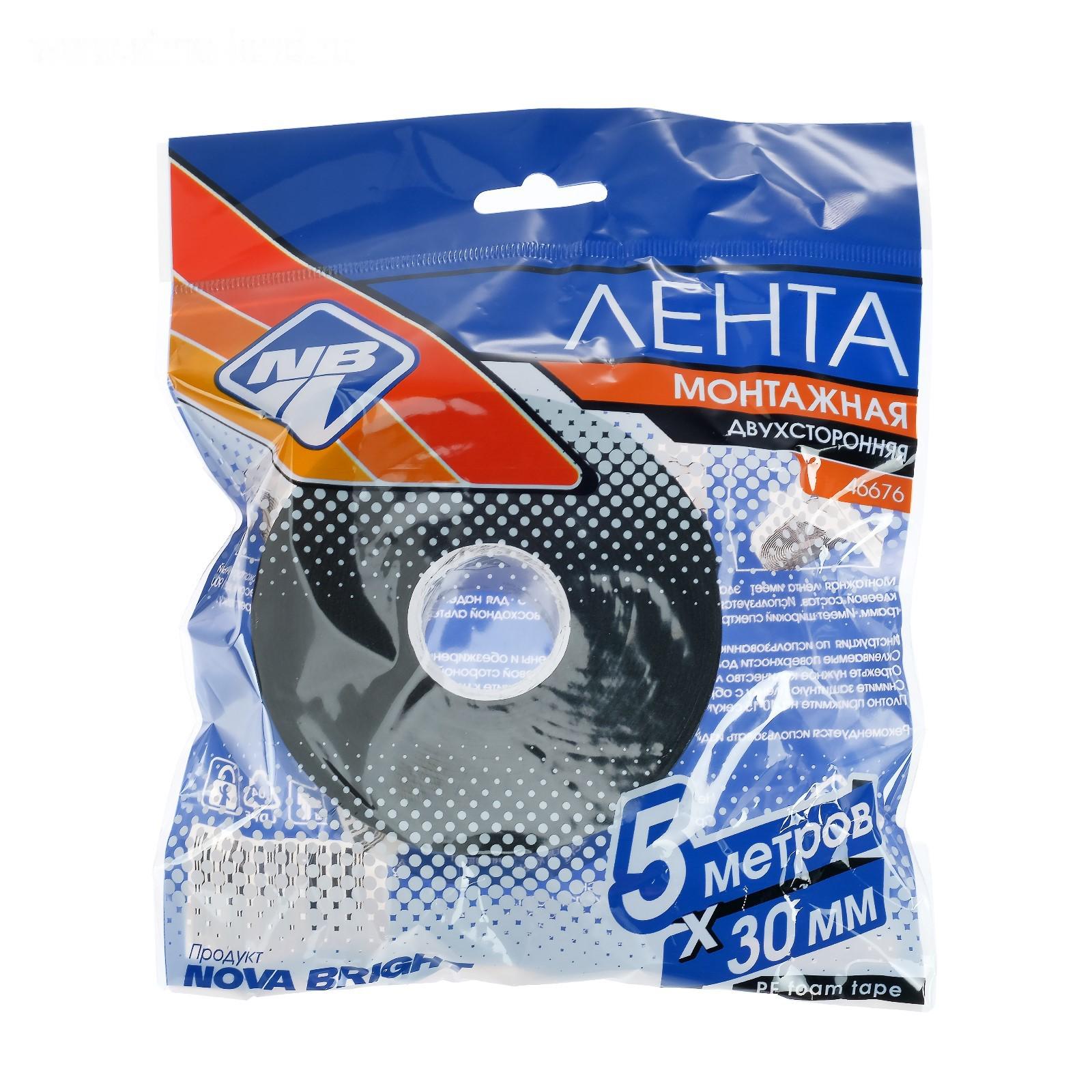 Лента клеящая двусторонняя Nova Bright, на вспененной основе, 30 мм х 5 м